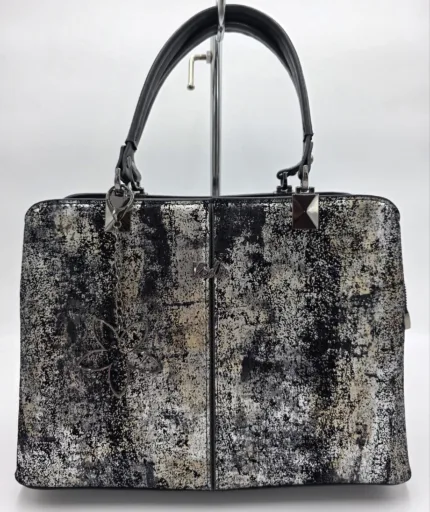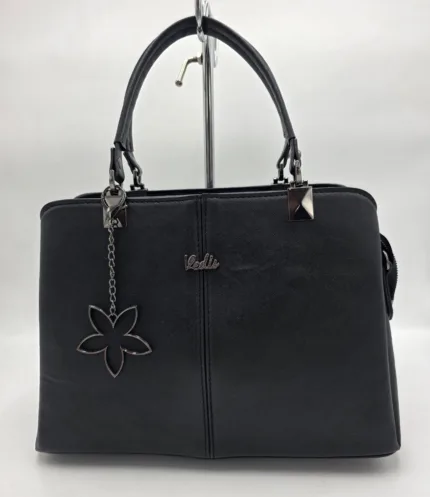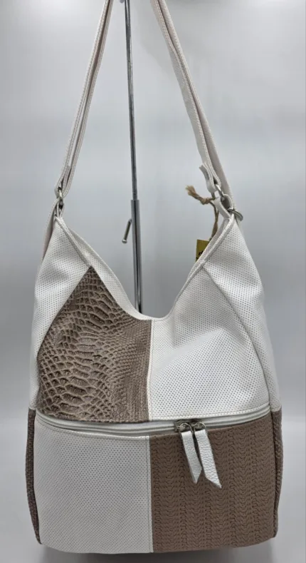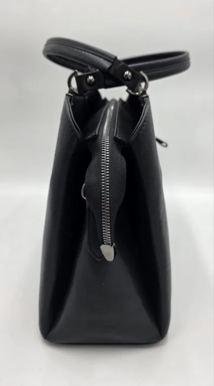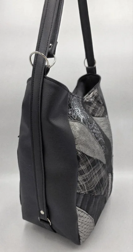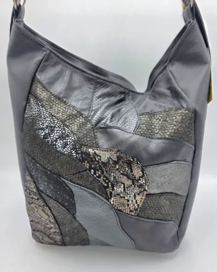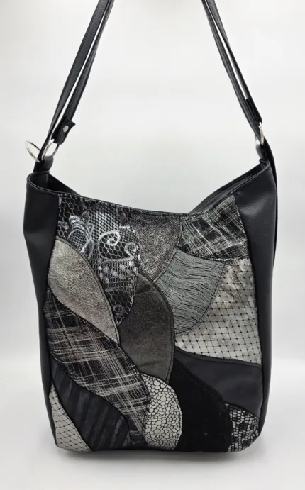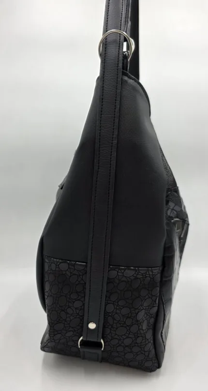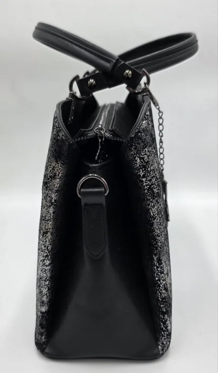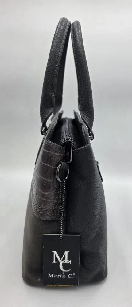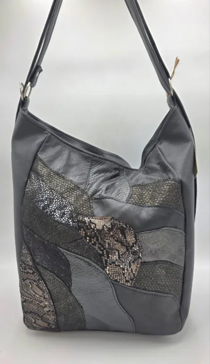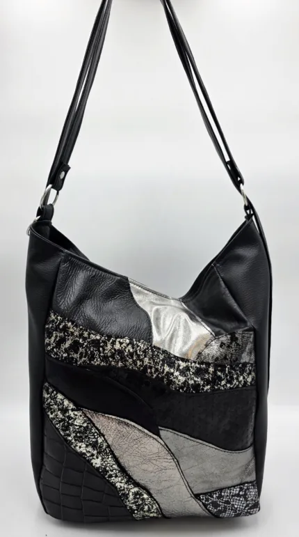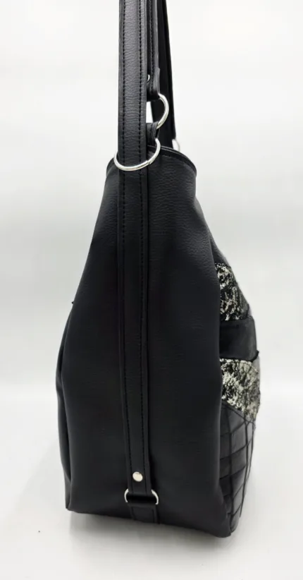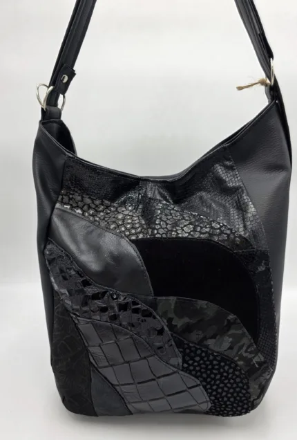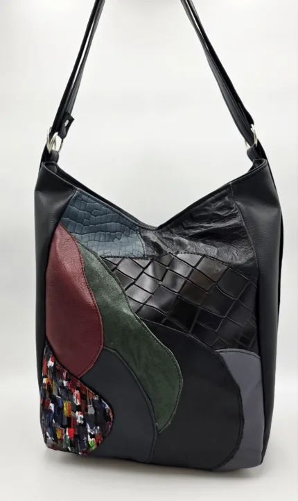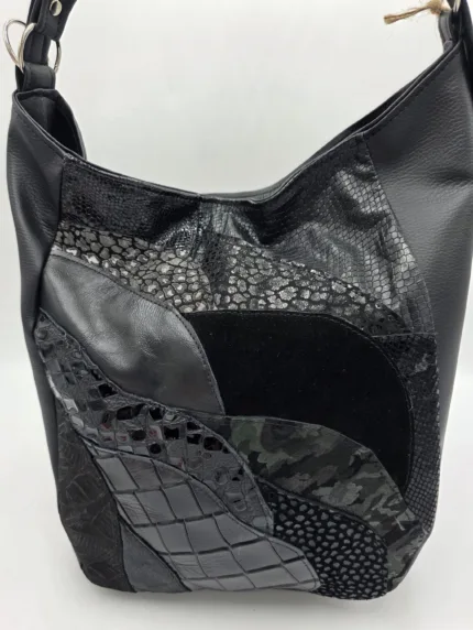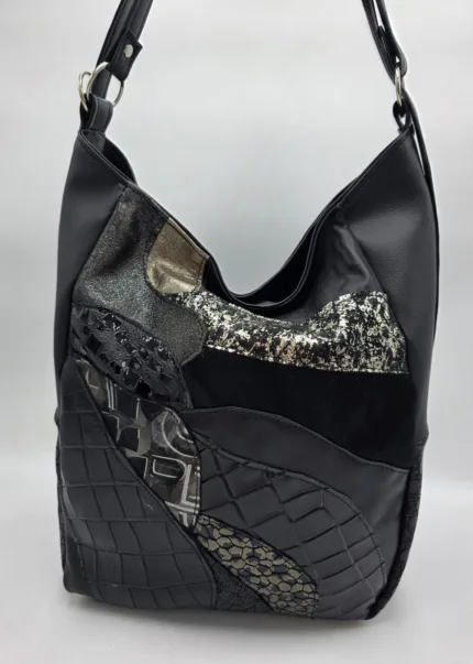 Чанта от еко кожа с елементи от естествена кожа в черно