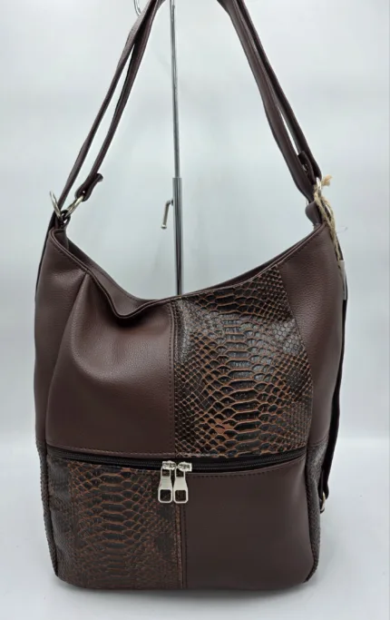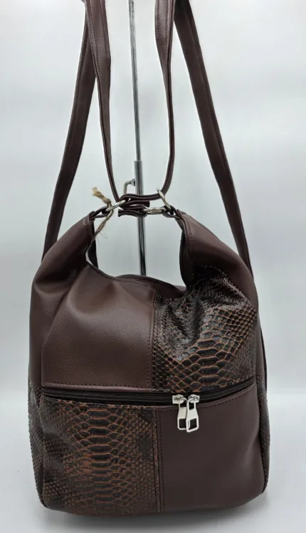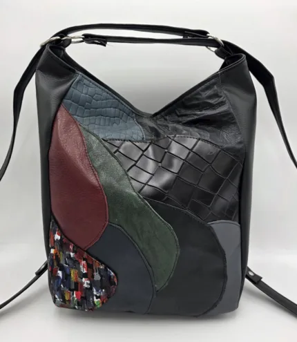 Чанта раница от еко кожа с елементи от естествена кожа в черно