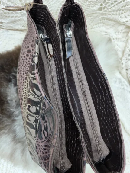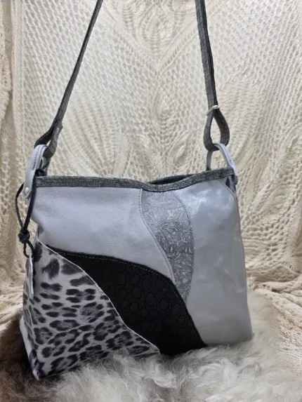 Чанта от естествена кожа в графит/леопардов принт/и черно
