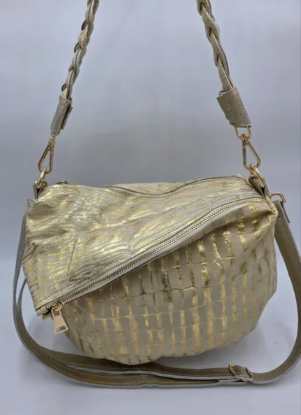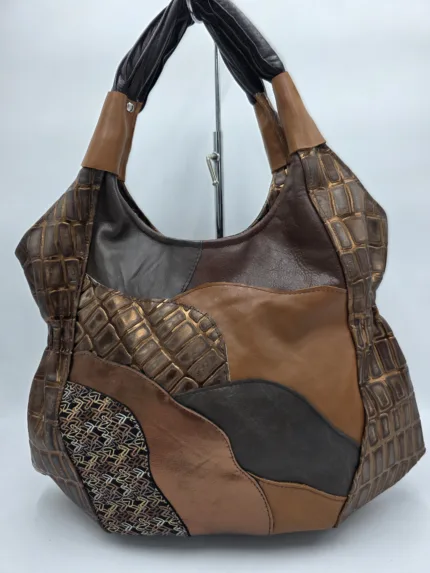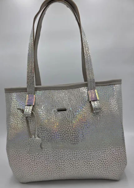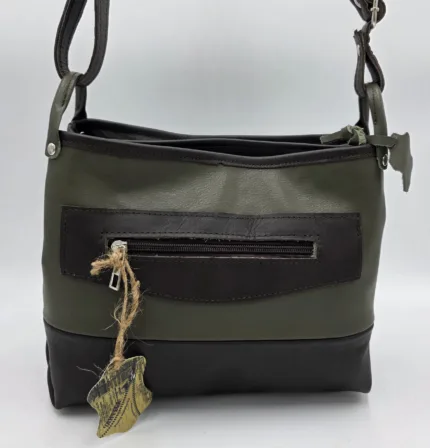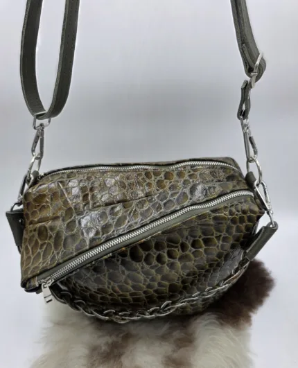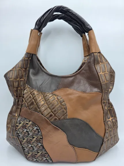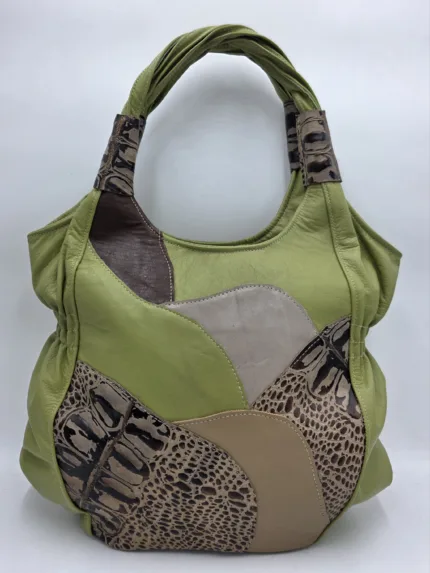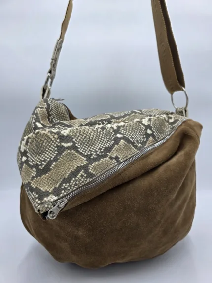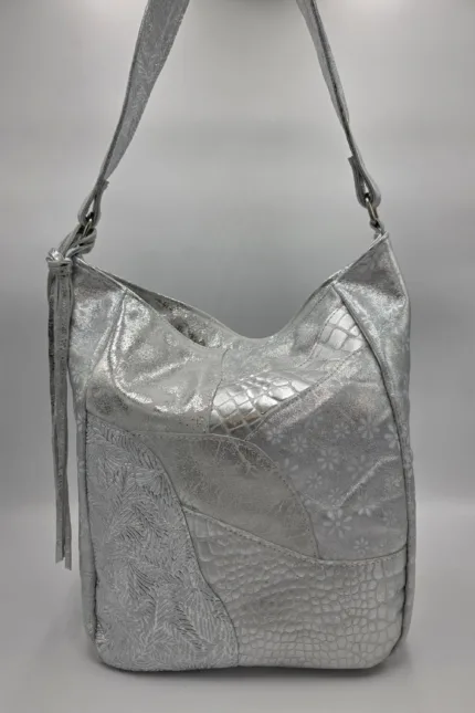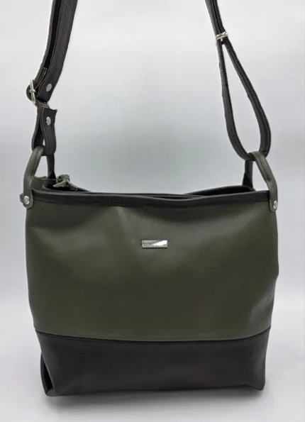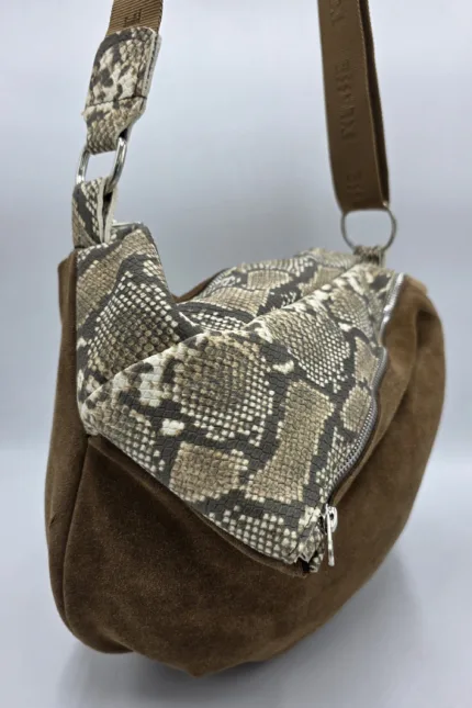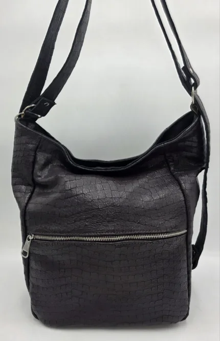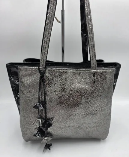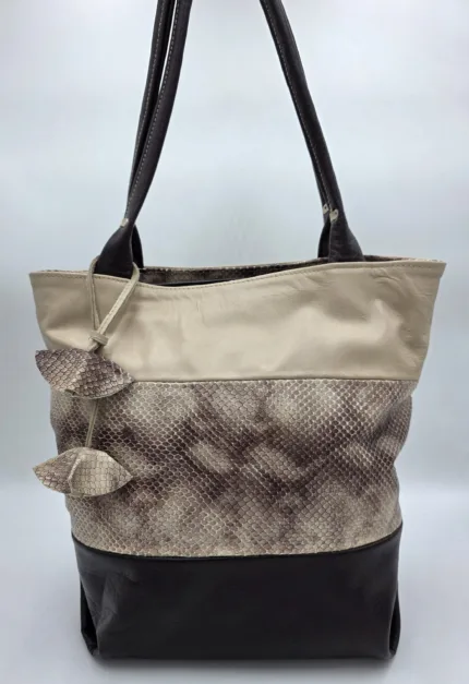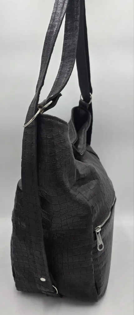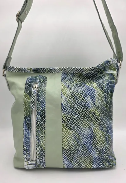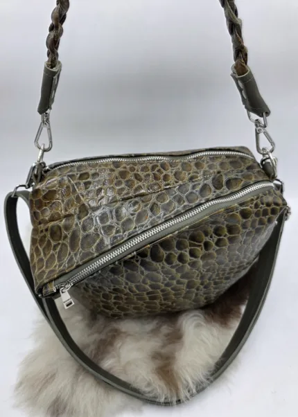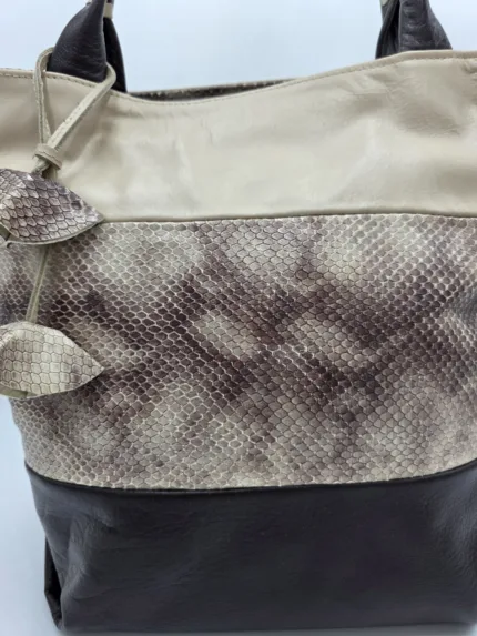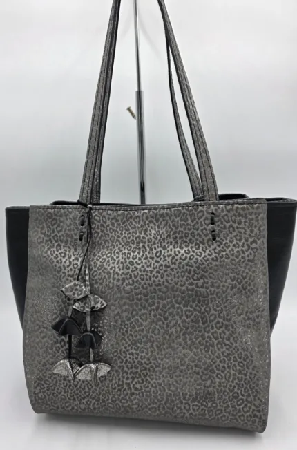 Чанта от естествена кожа в графит/леопардов принт/и черно