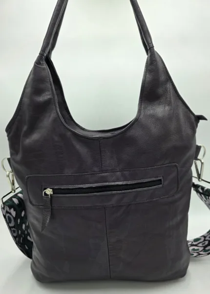 Чанта от естествена кожа в тъмно лилаво