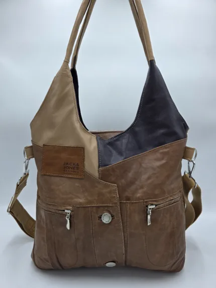 Чанта от естествена кожа съчетание от цветове