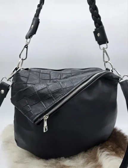 Чанта от естествена кожа в черно