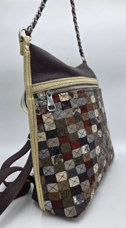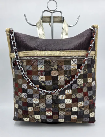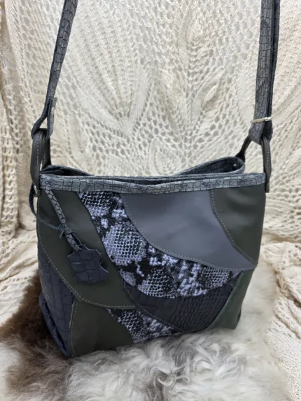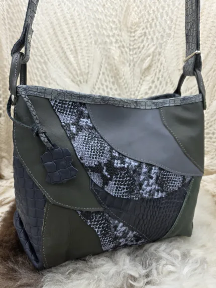 Чанта от естествена кожа в графит/леопардов принт/и черно