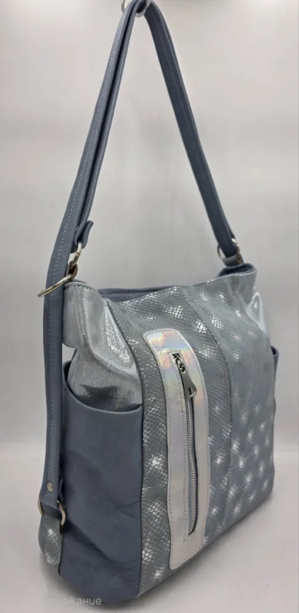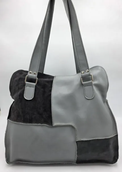 Чанта естествена кожа в сиво и бяло