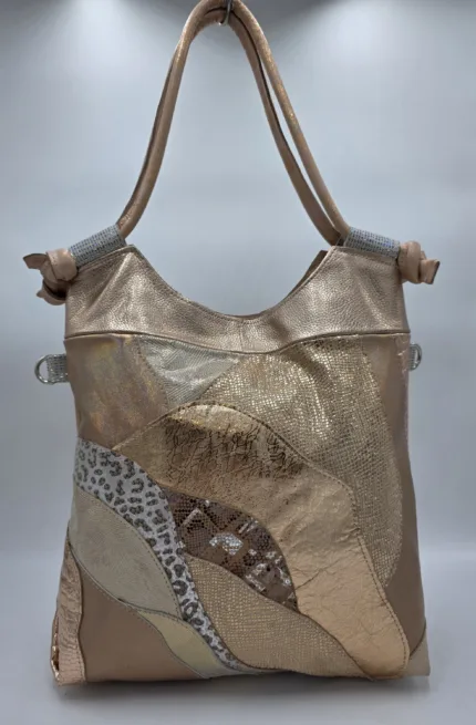Уникална чанта от естествена кожа тип торба,външен заден джоб с цип,два странични джоба с копче, супер удобни две дръжки 65см,вътрешен