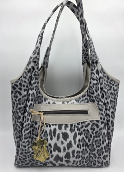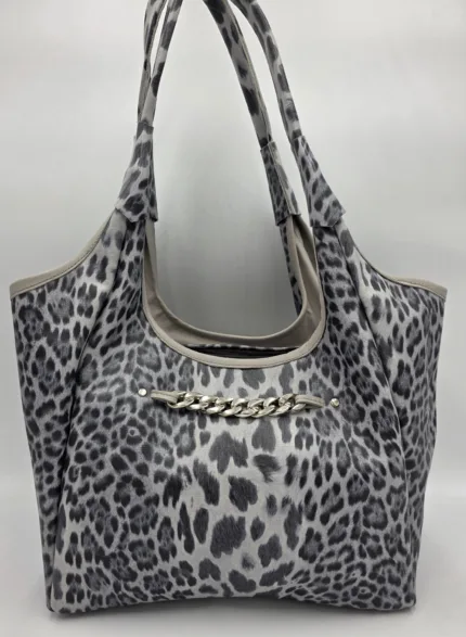 Чанта от естествена кожа в сив леопардов принт