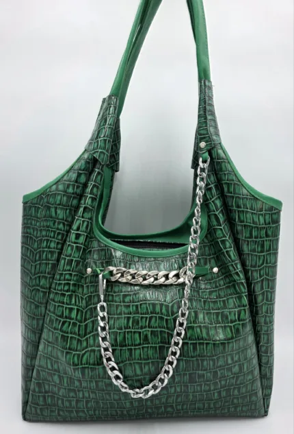 Чанта от естествена кожа в зелено кроко