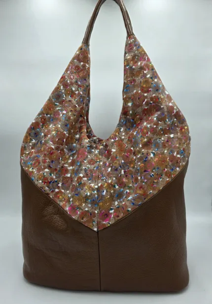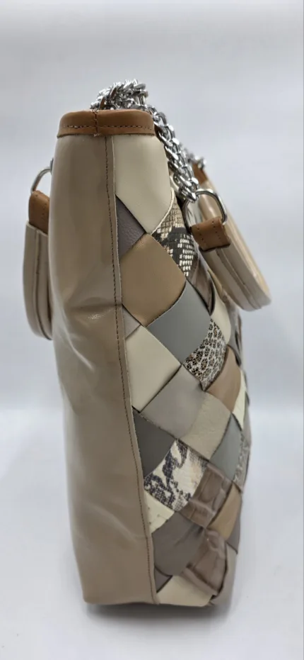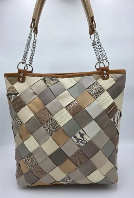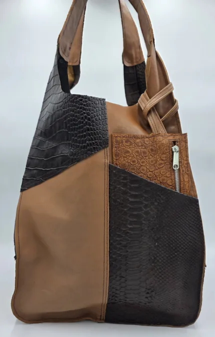 Чанта от естествена кожа в светло и тъмно кафяво