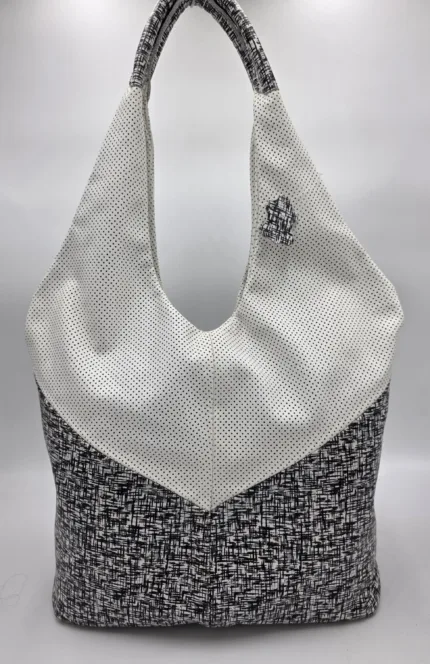 Чанта от естествена кожа в бяло и черно