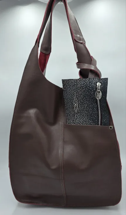Чанта от естествена кожа в бордо