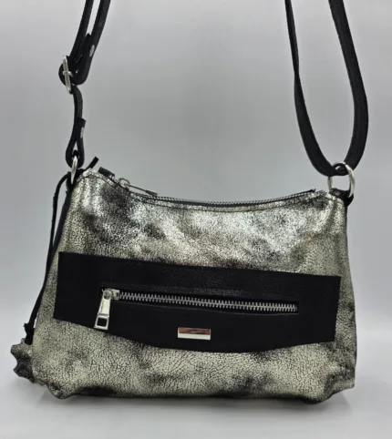 Чанта естествена кожа беж+сребро