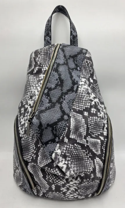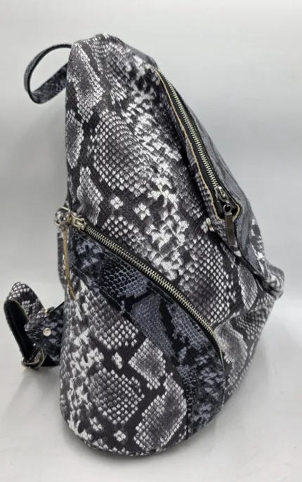Раница от естествена кожа в сив змийски принт