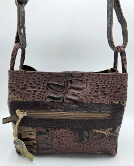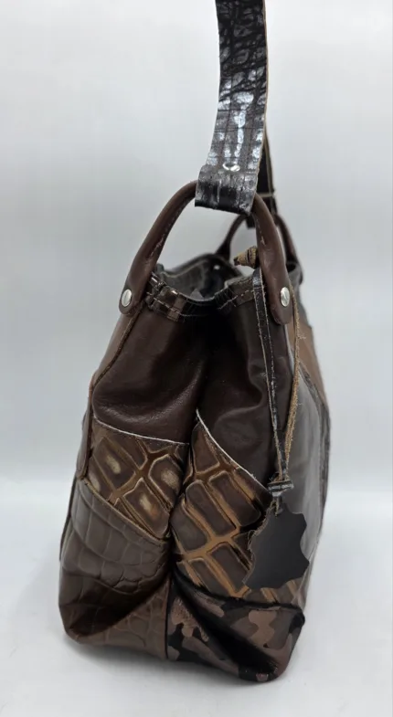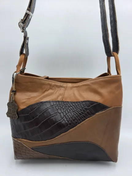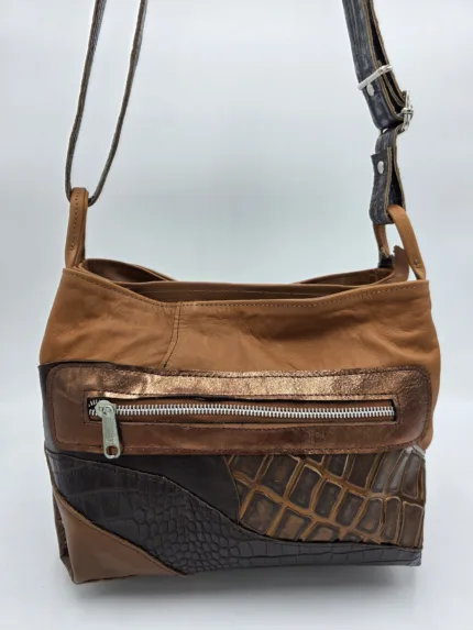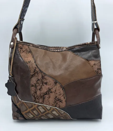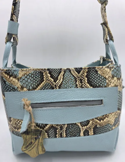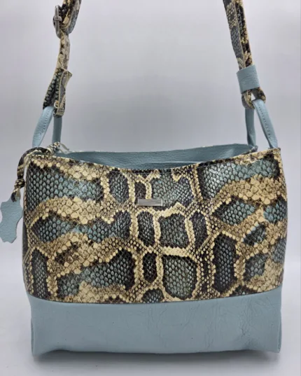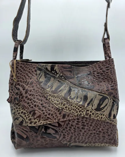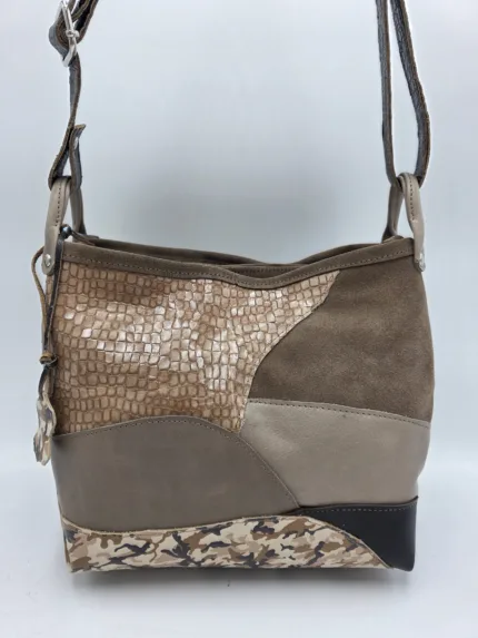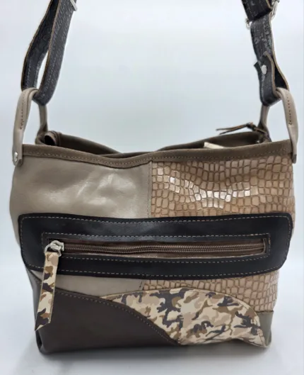 Чанта от естествена кожа в графит и черно с флорални мотиви