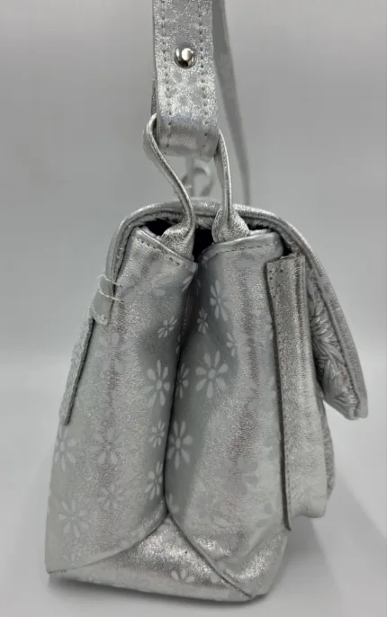 Чанта от естествена кожа в графит и черно с флорални мотиви
