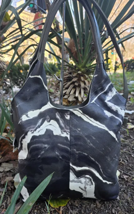 Курс: 1 EUR = 1.95583 BGNЧанта от естествена кожа в графит и черно с флорални мотиви