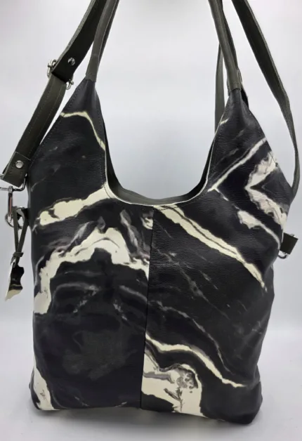 Курс: 1 EUR = 1.95583 BGNЧанта от естествена кожа в графит/леопардов принт/и черно