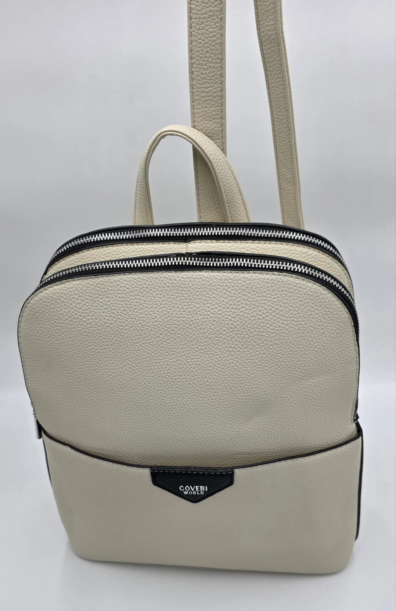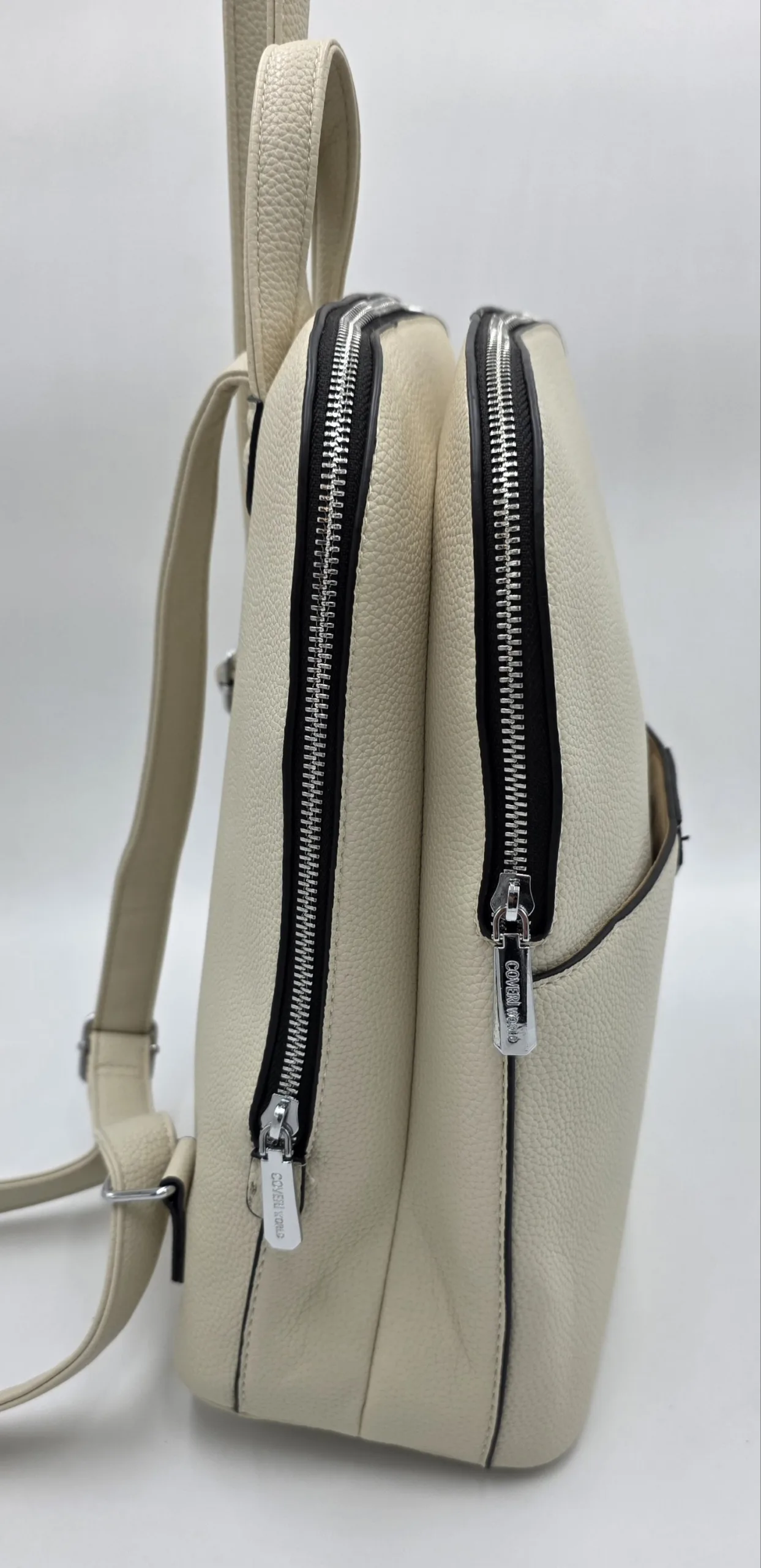 Раница от еко кожа с две отделни прегради с цип ,преден външен джоб с магнит,вътрешен джоб с цип и допълнителни джобове за телефон. Височина 35см,ширина 32см,дъно 30см/14см
