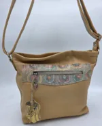 Чанта от естествена кожа за през рамо с дълга регулираща се дръжка 150см, закопчаване с цип, средна преграда с цип, вътрешен джоб с цип и допълнителни джоб за телефон, външен заден джоб с цип. Ширина 28см,височина 22см,дъно 24см/10см
