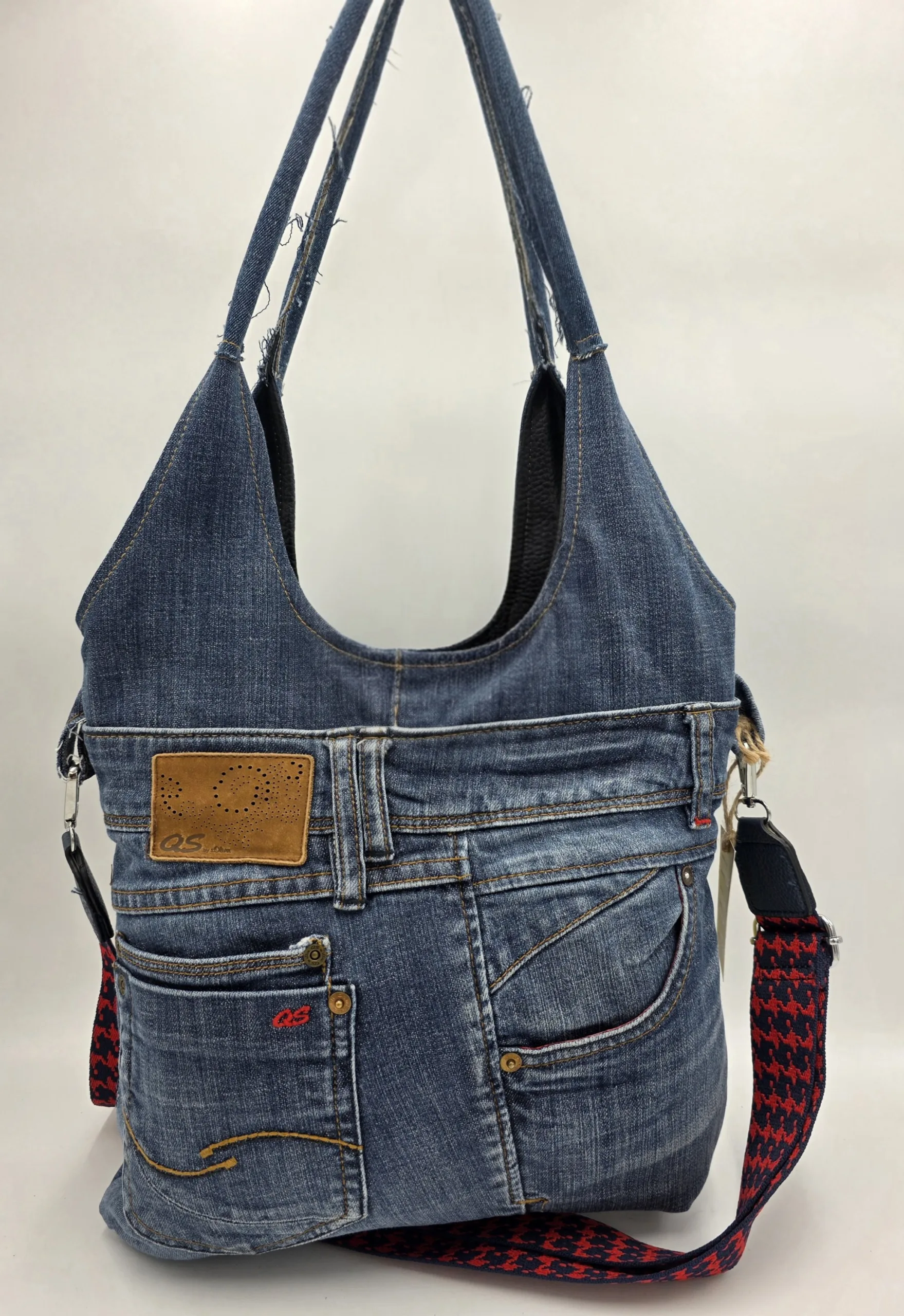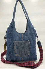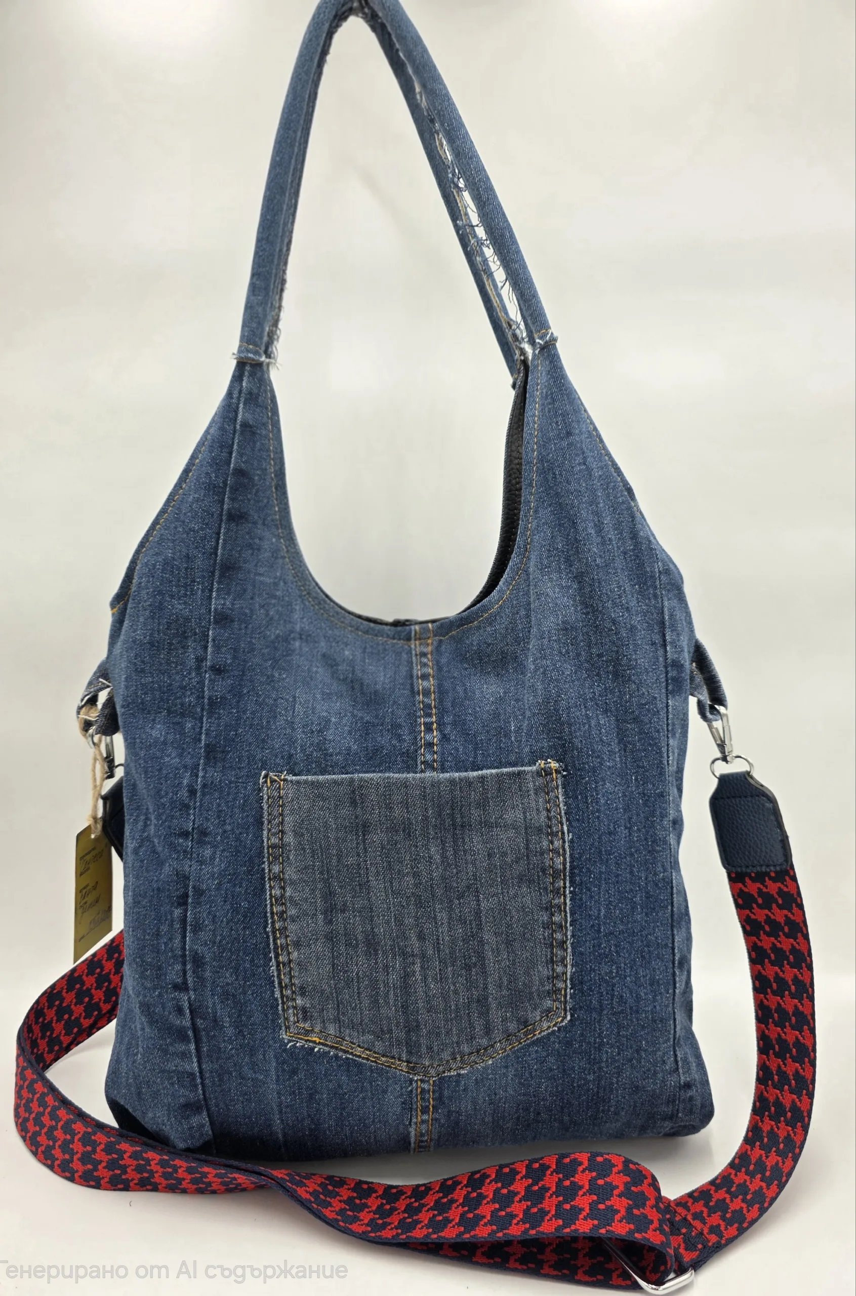 ✨ Чанта ръчна изработка от деним с две дръжки 65см и допълнителна дълга регулираща се дръжка 150см, с външен заден джоб 20см,вътре със средна преграда с цип ,вътрешен джоб с цип и допълнителен джоб за телефон. Ширина 32см,височина 30см,без оформено дъно