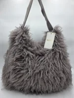 Чанта от еко косъм в сиво