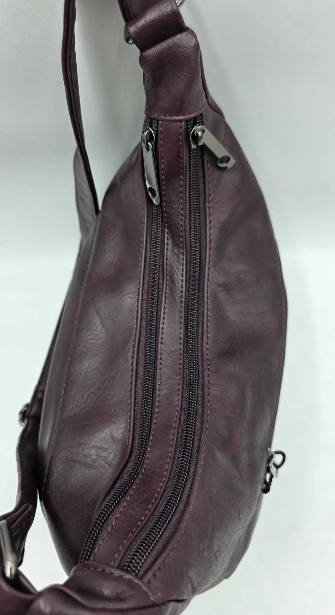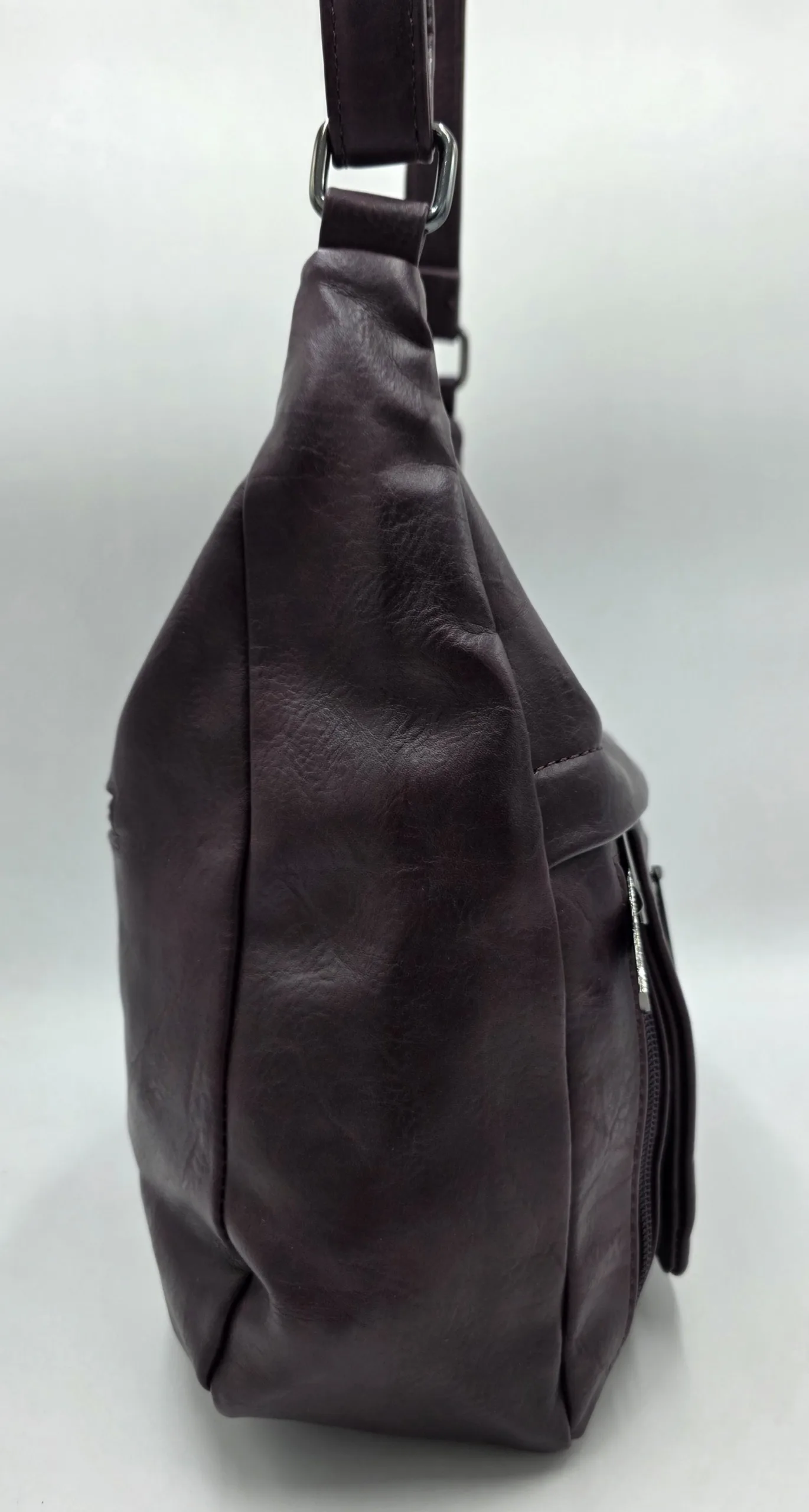 Чанта от еко кожа с нестандартна форма с две вързани регулиращи дръжки 120см максимална дължина, закопчава се с цип и