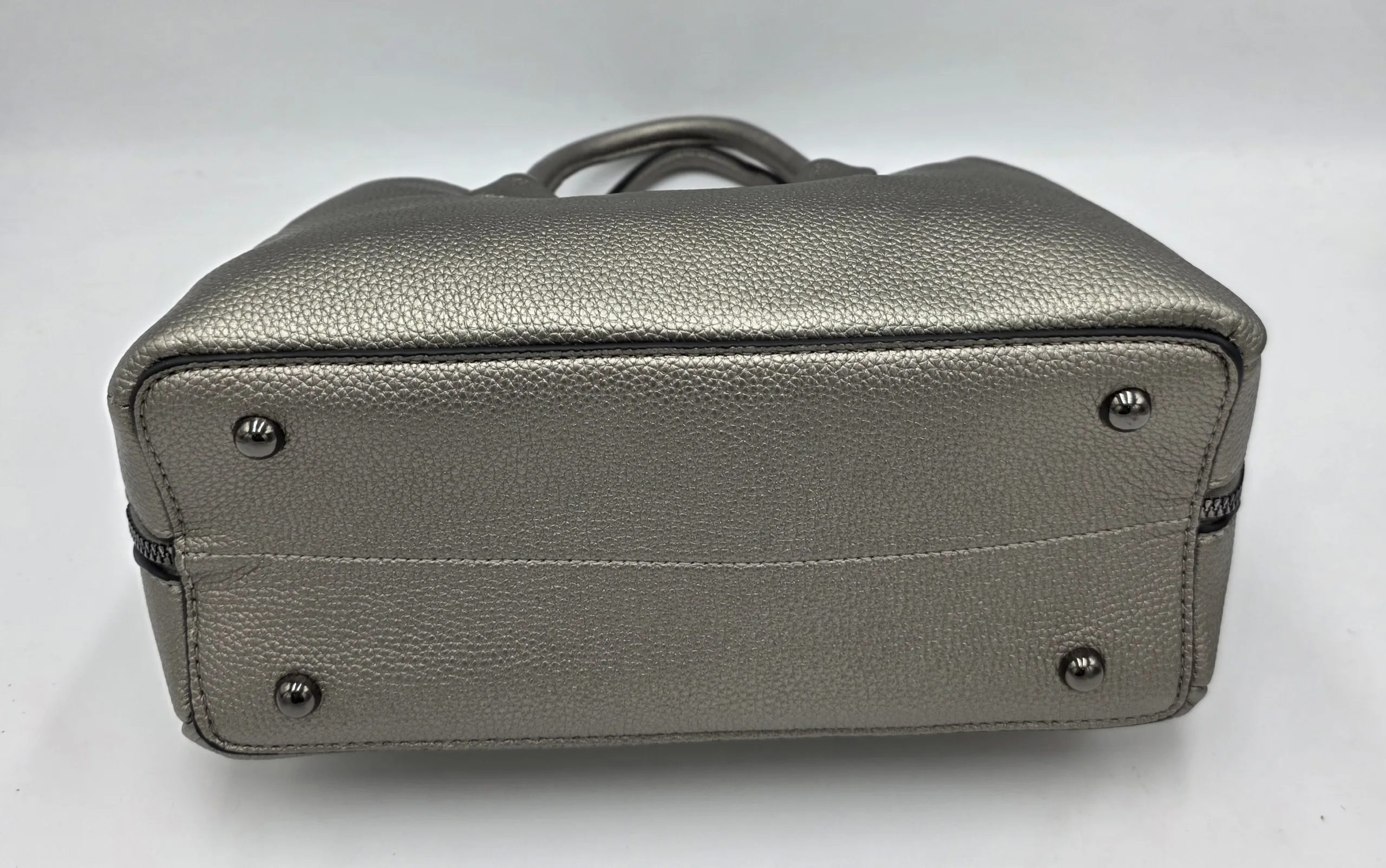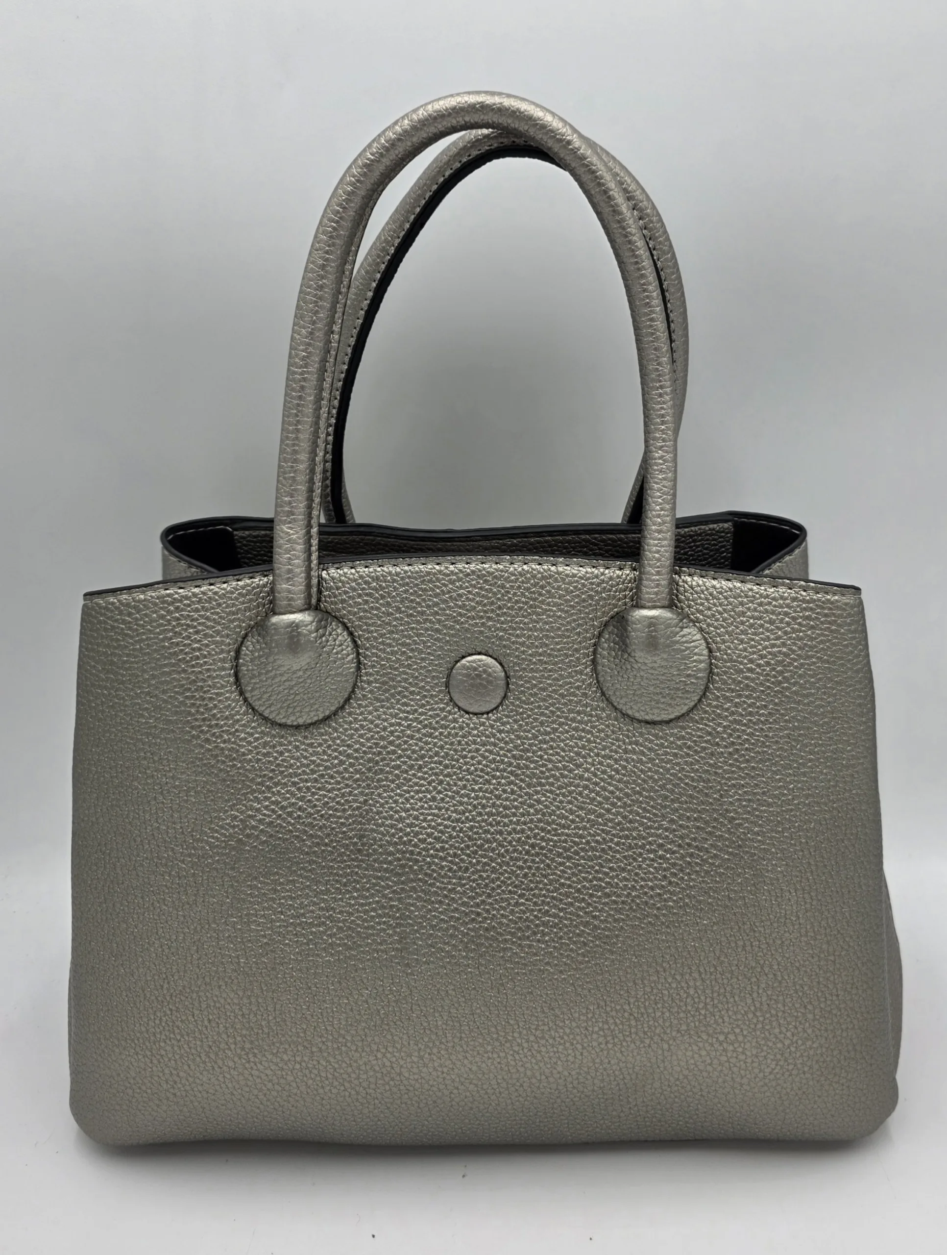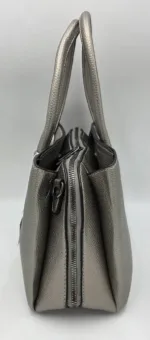Малка чанта от еко кожа с три отделни прегради, едната с цип, две с магнит, вътрешен джоб с цип и допълнителни джобове за телефон, две къси дръжки 38см, допълнителна дълга регулираща се дръжка 150см,ширина 33см, височина 20см, дъно 27см/12см.