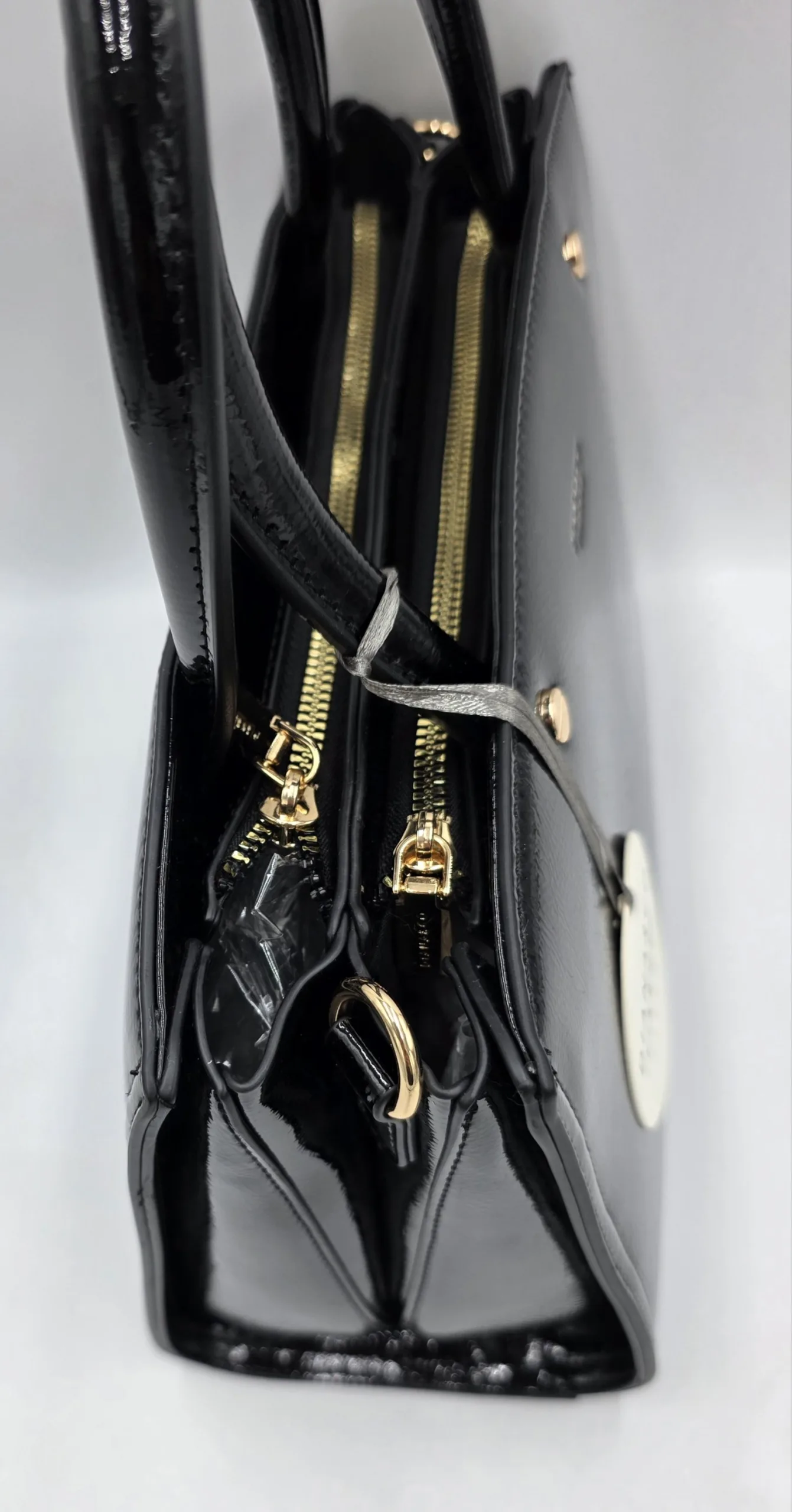 Луксозна чанта от еко кожа с две дръжки 36см,допълнителна дълга регулираща се дръжка 150см, две отделни прегради затварящи се с цип, вътрешен джоб с цип и допълнителни джобове за телефон, ширина 30см, височина 20см, дъно 30см/10см.
