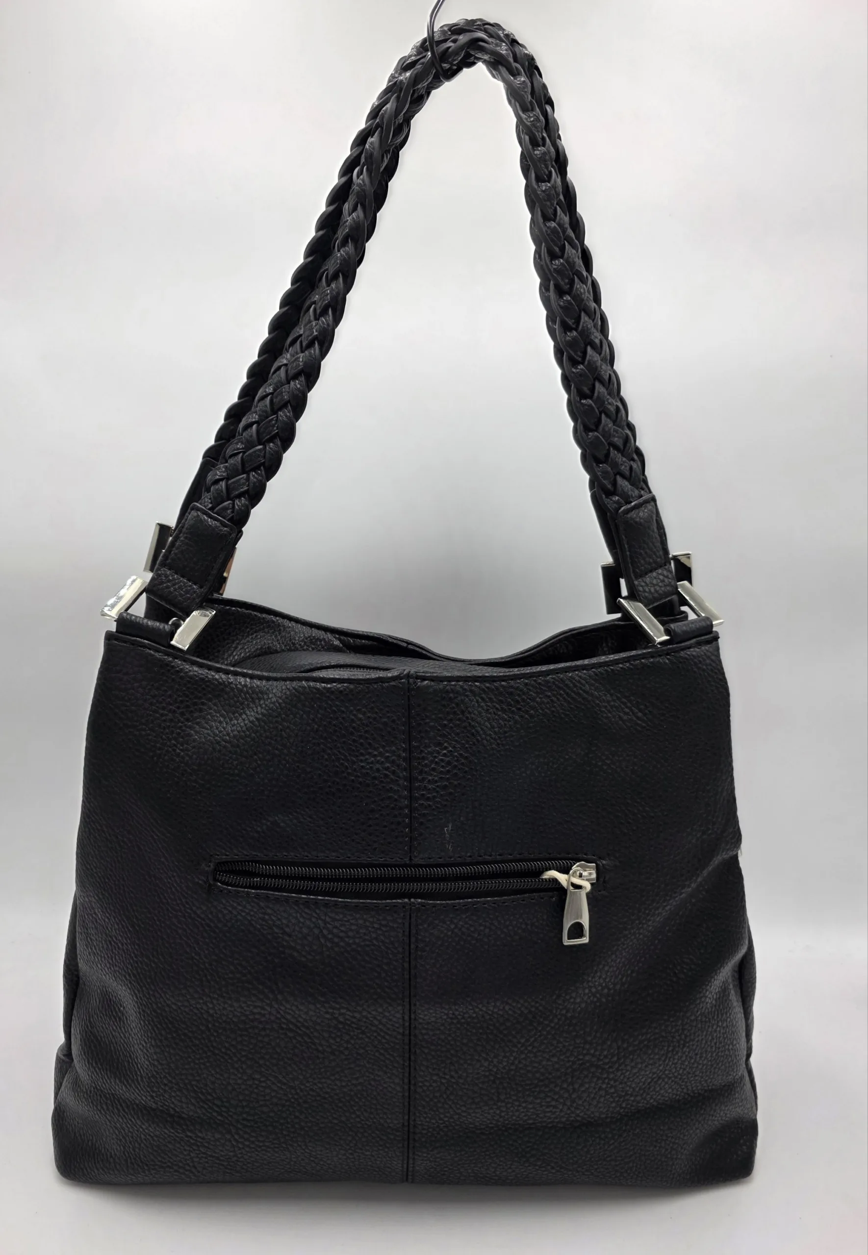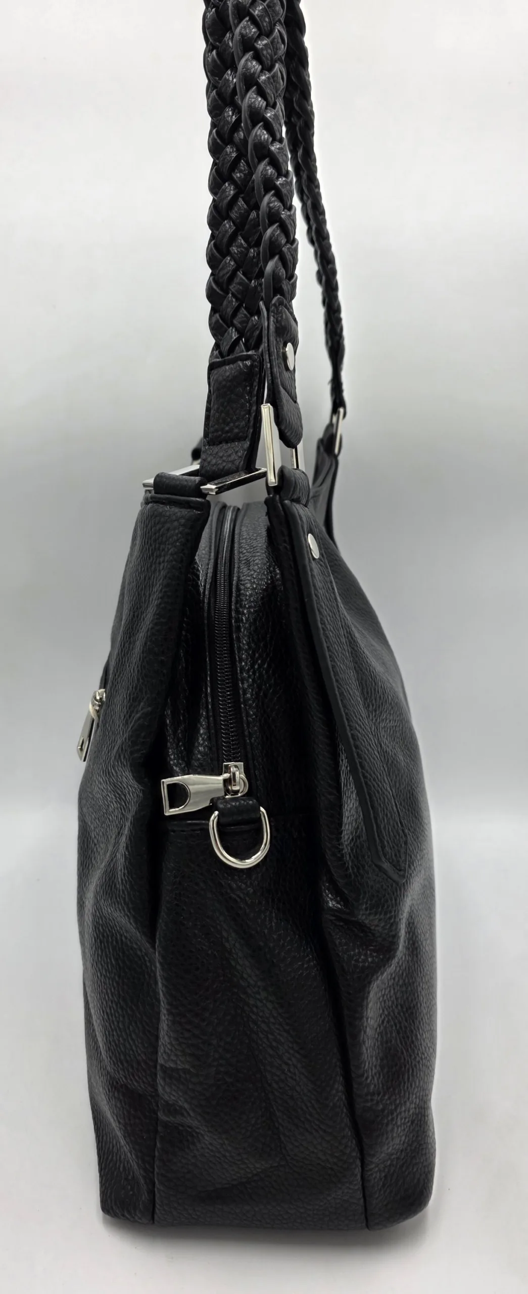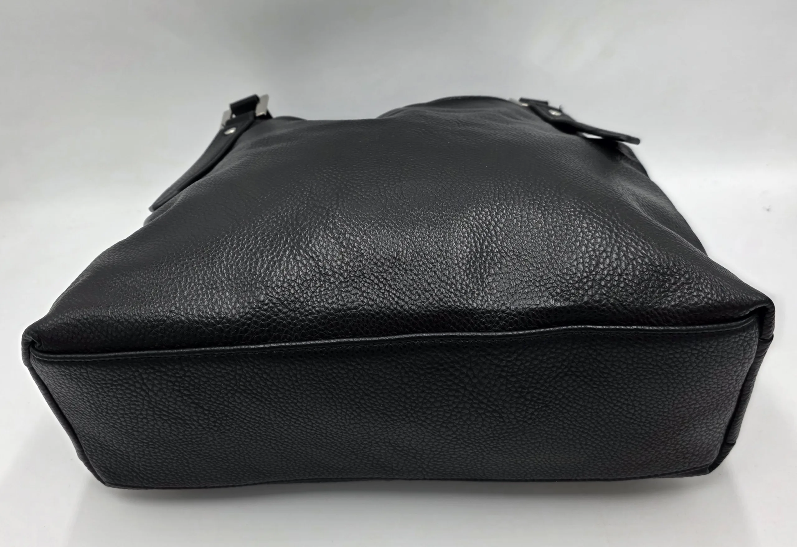 Чанта от еко кожа с две дръжки 60см,допълнителна дълга регулираща се дръжка 150см, заден външен джоб с цип, закопчаване с цип, два вътрешни джоба с цип,допълнителни джобове без цип. Ширина 42см, височина 29см, дъно 36см/12см.