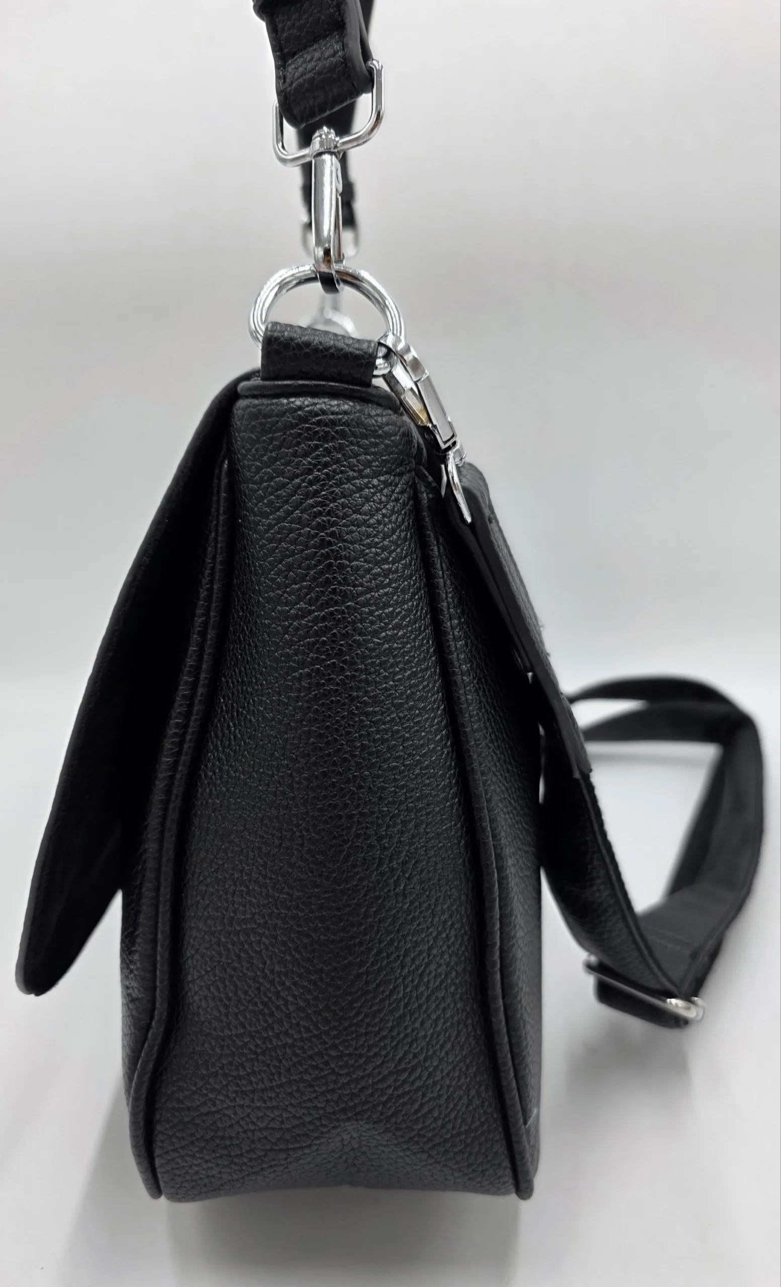 Чанта от еко кожа с нестандартна форма с две вързани регулиращи дръжки 120см максимална дължина, закопчава се с цип и