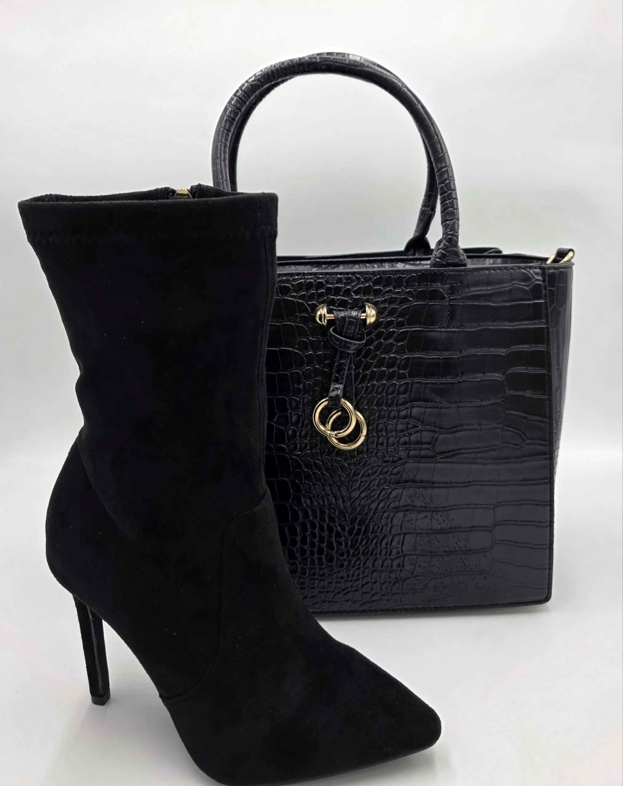 Начало Чанти от Еко Кожа Средни Чанти Чанта от еко кожа в черно кроко