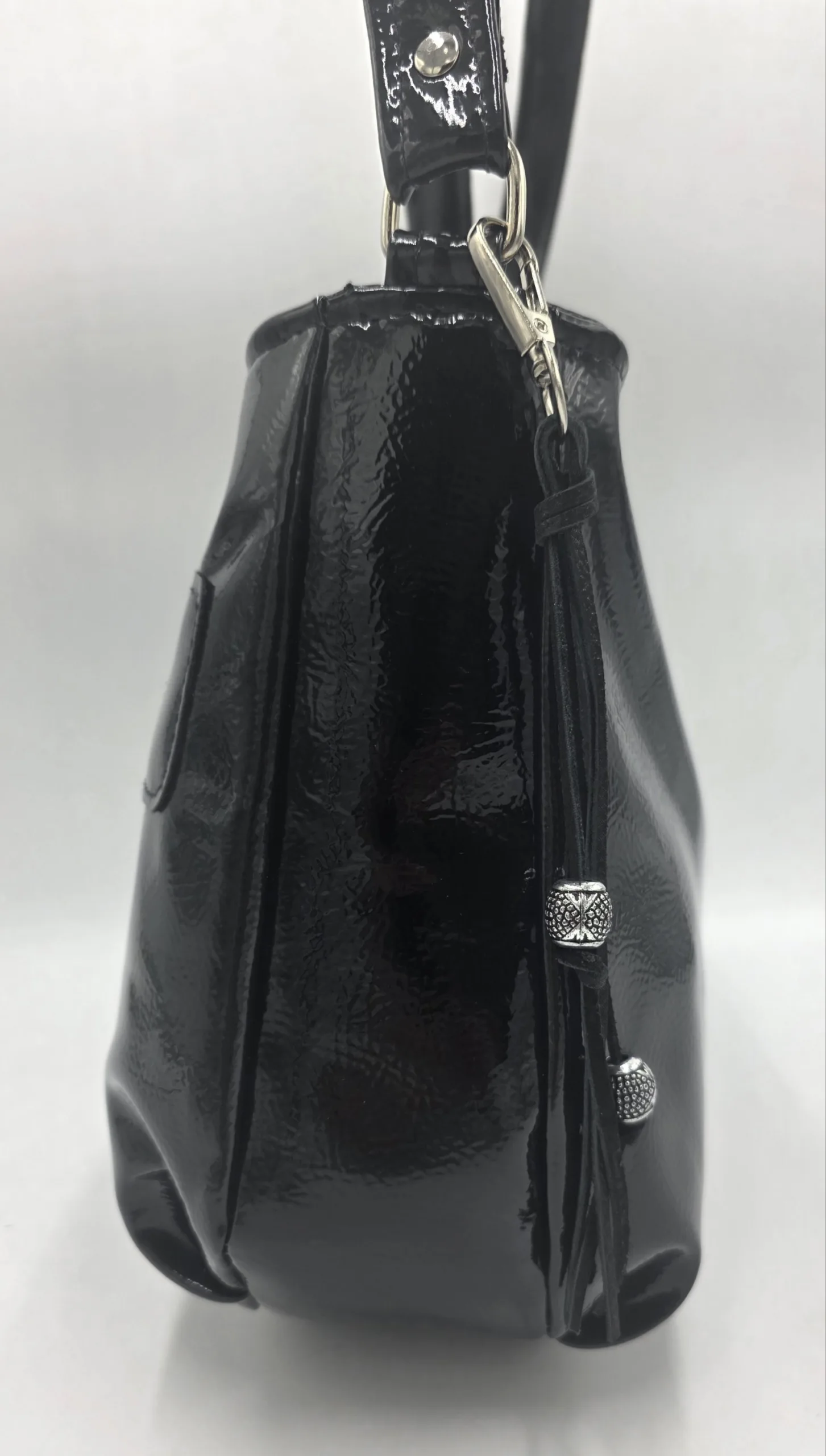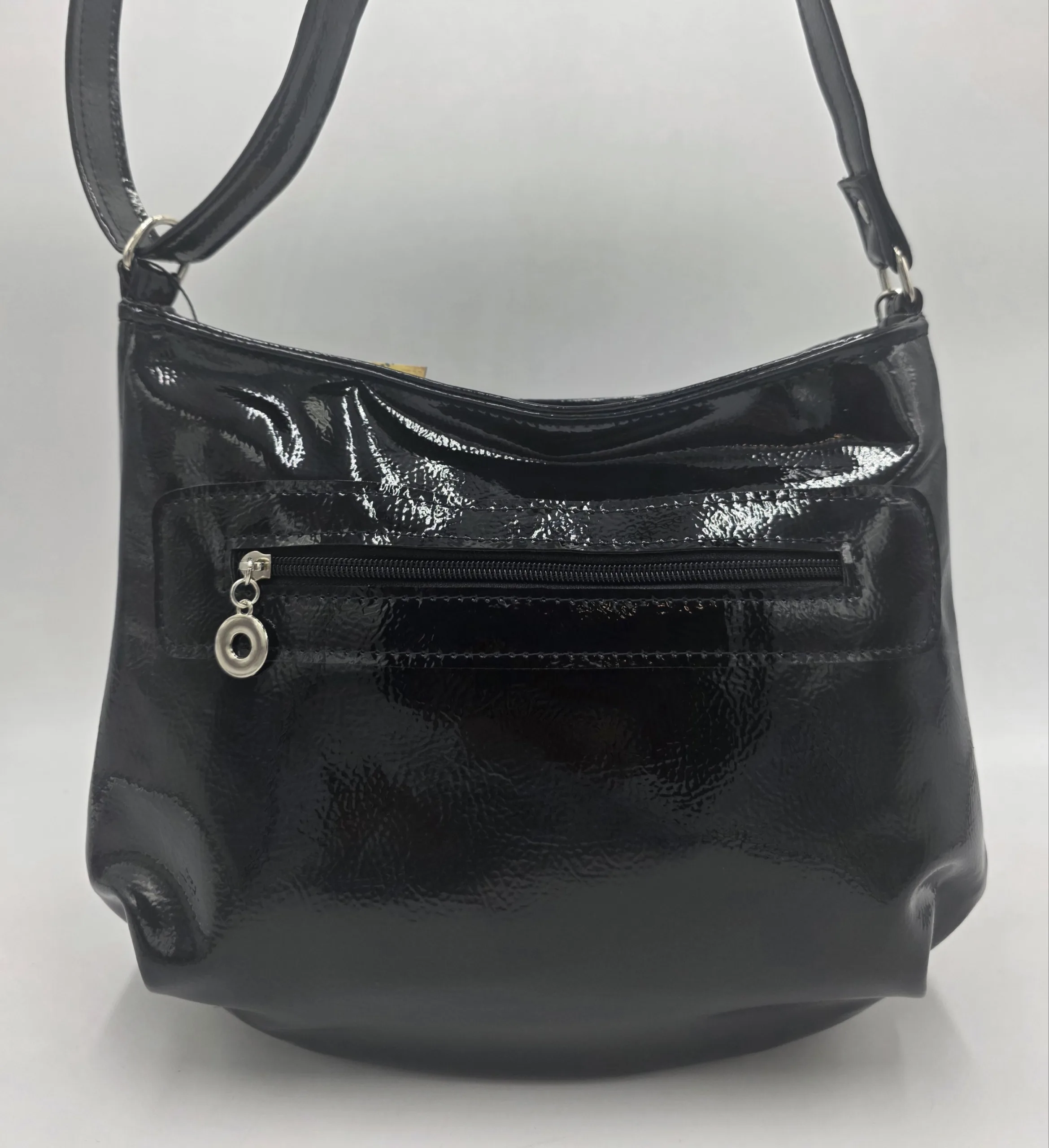 Ръчно изработена чанта от еко кожа с дълга регулираща се дръжка 150см, външен заден джоб с, закопчаване с цип, средна преграда с цип, вътрешен джоб с цип и допълнителен джоб за телефон, ширина 30см, височина 25см, дъно 29см/9см.