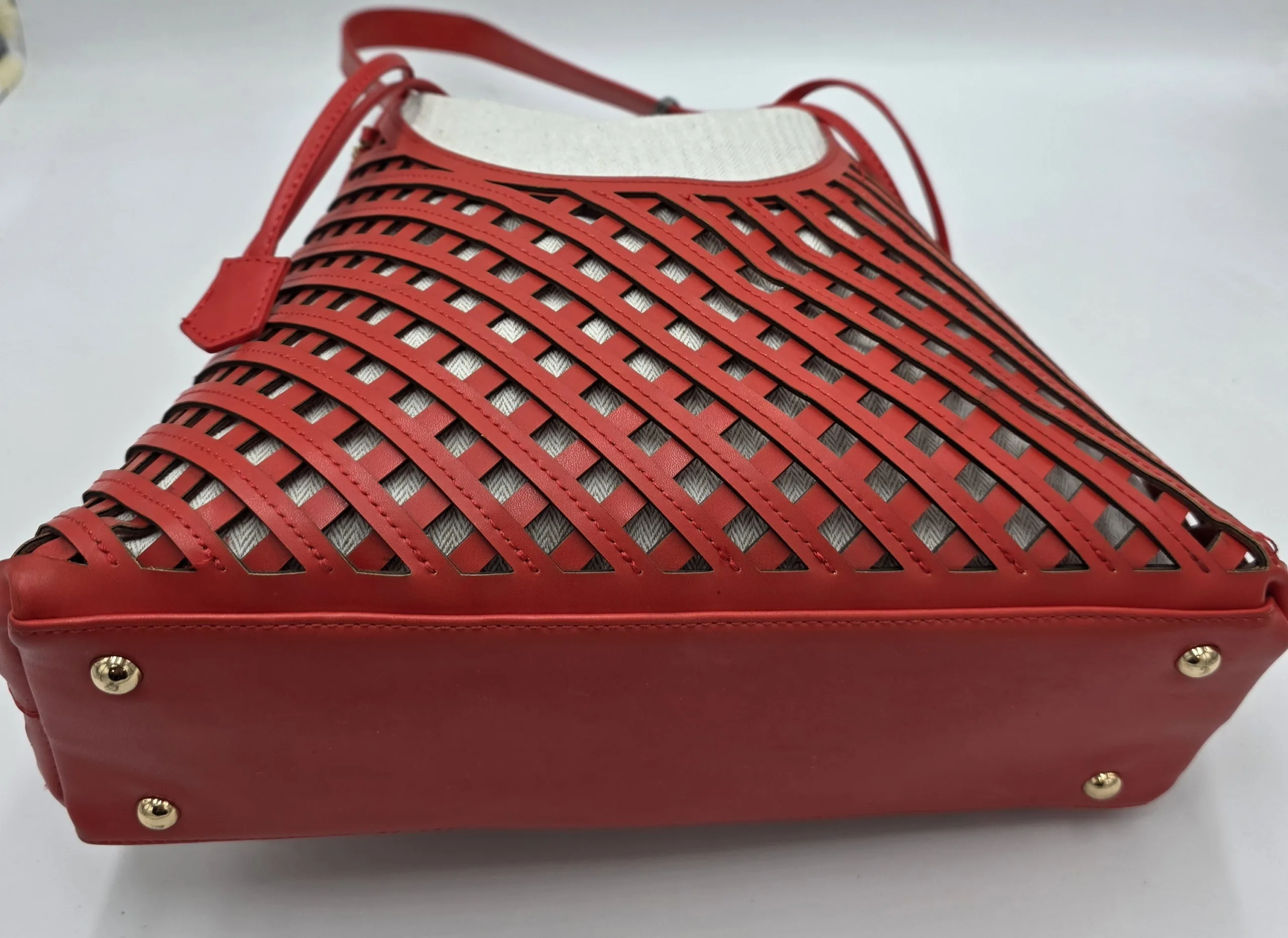 Чанта от еко кожа с нестандартна форма с две вързани регулиращи дръжки 120см максимална дължина, закопчава се с цип и