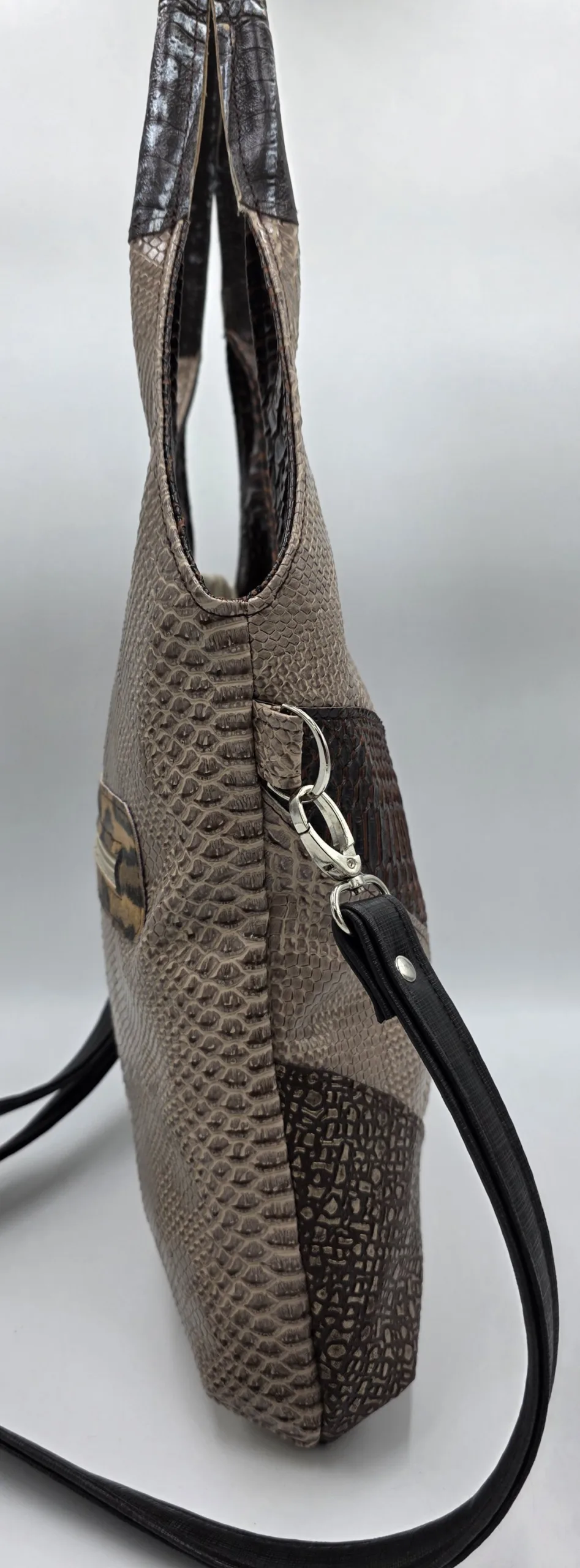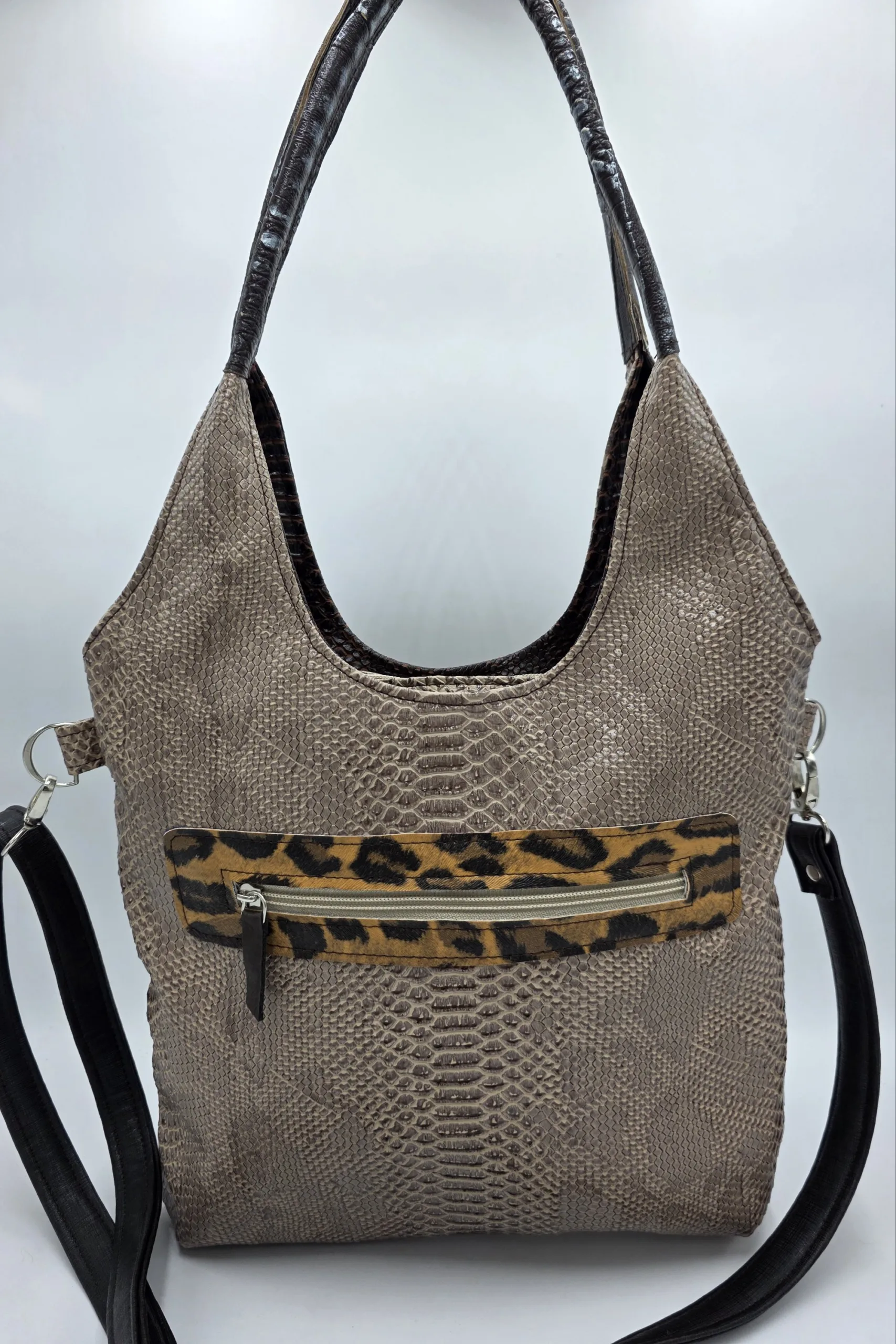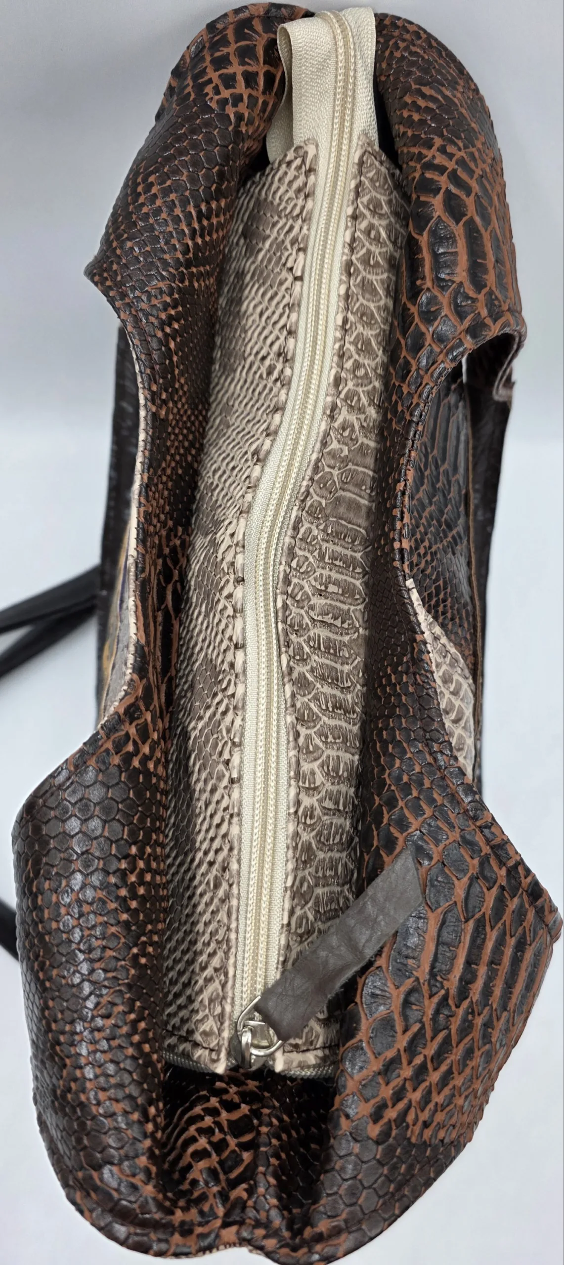 Чанта с две дръжки 65см и допълнителна дълга регулираща се дръжка 150см, външен заден джоб с цип, закопчаване с цип, вътре със средна преграда с цип, джоб с цип и допълнителен джоб за телефон. Ширина 35см ,височина 30см ,няма оформено дъно.