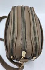 Чанта от еко кожа с дълга регулираща се дръжка 150см, три отделни прегради затварящи се с цип, два странични външни джоба с цип,вътрешен джоб с цип и допълнителни джобове за телефон. Ширина 28см,височина 20см,дъно 28см/12см.