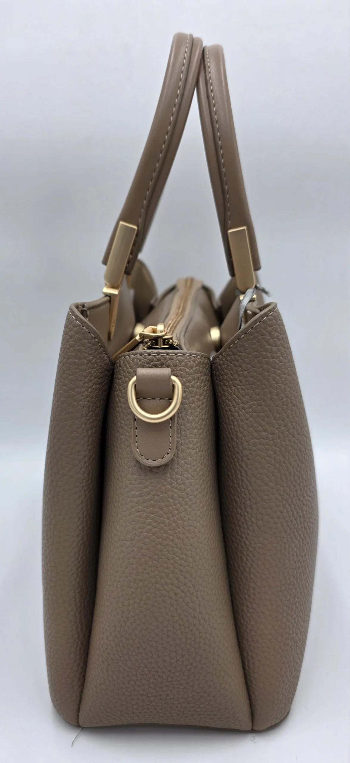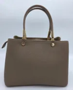 Елегантна чанта от еко кожа с три отделни прегради, едната с цип, две с магнит, две къси дръжки 32см,допълнителна дълга регулираща се дръжка 150см,външен джоб с цип и допълнителен джоб за телефон. Ширина 30см,височина 20см,дъно 28см/12см.
