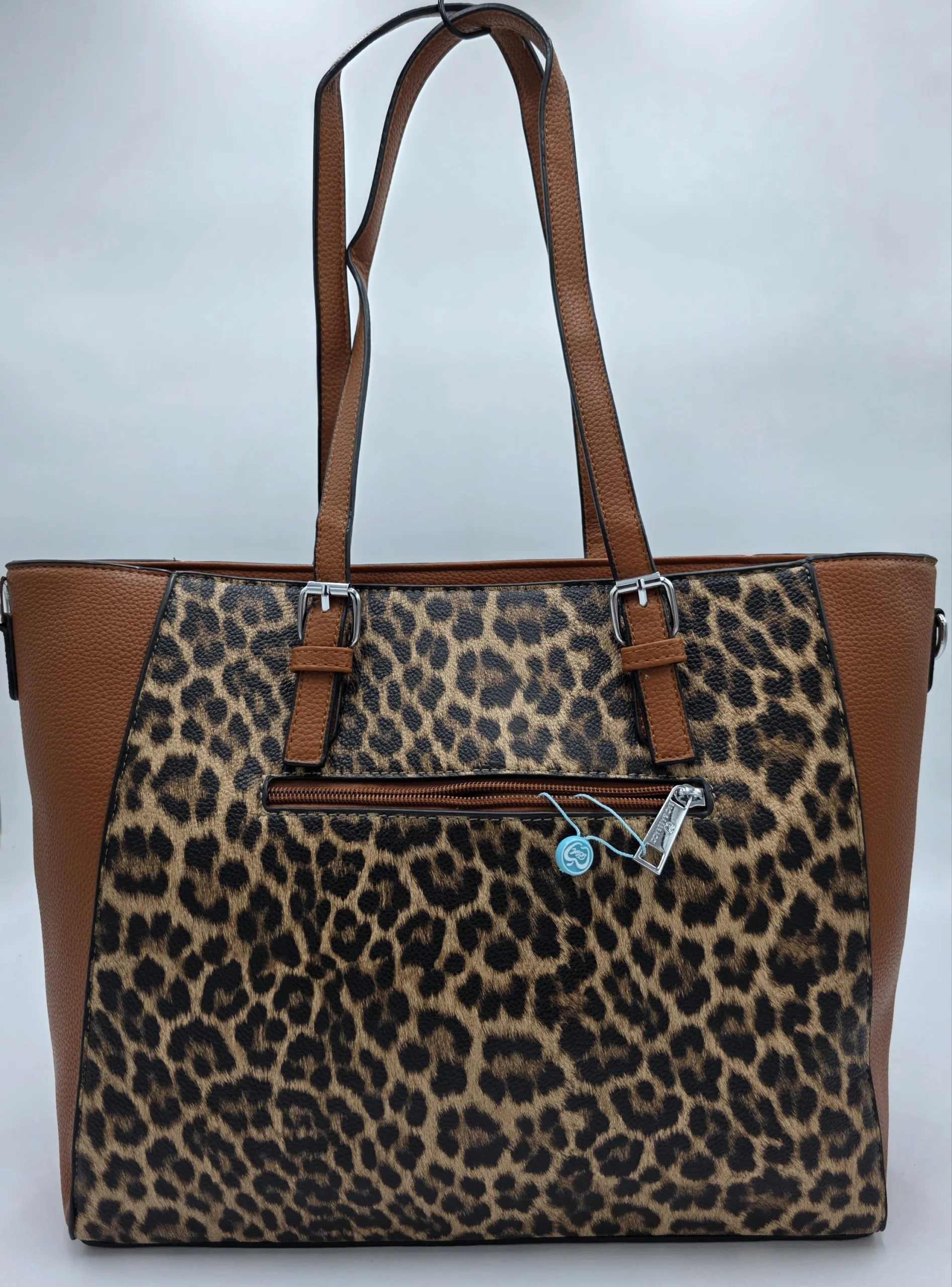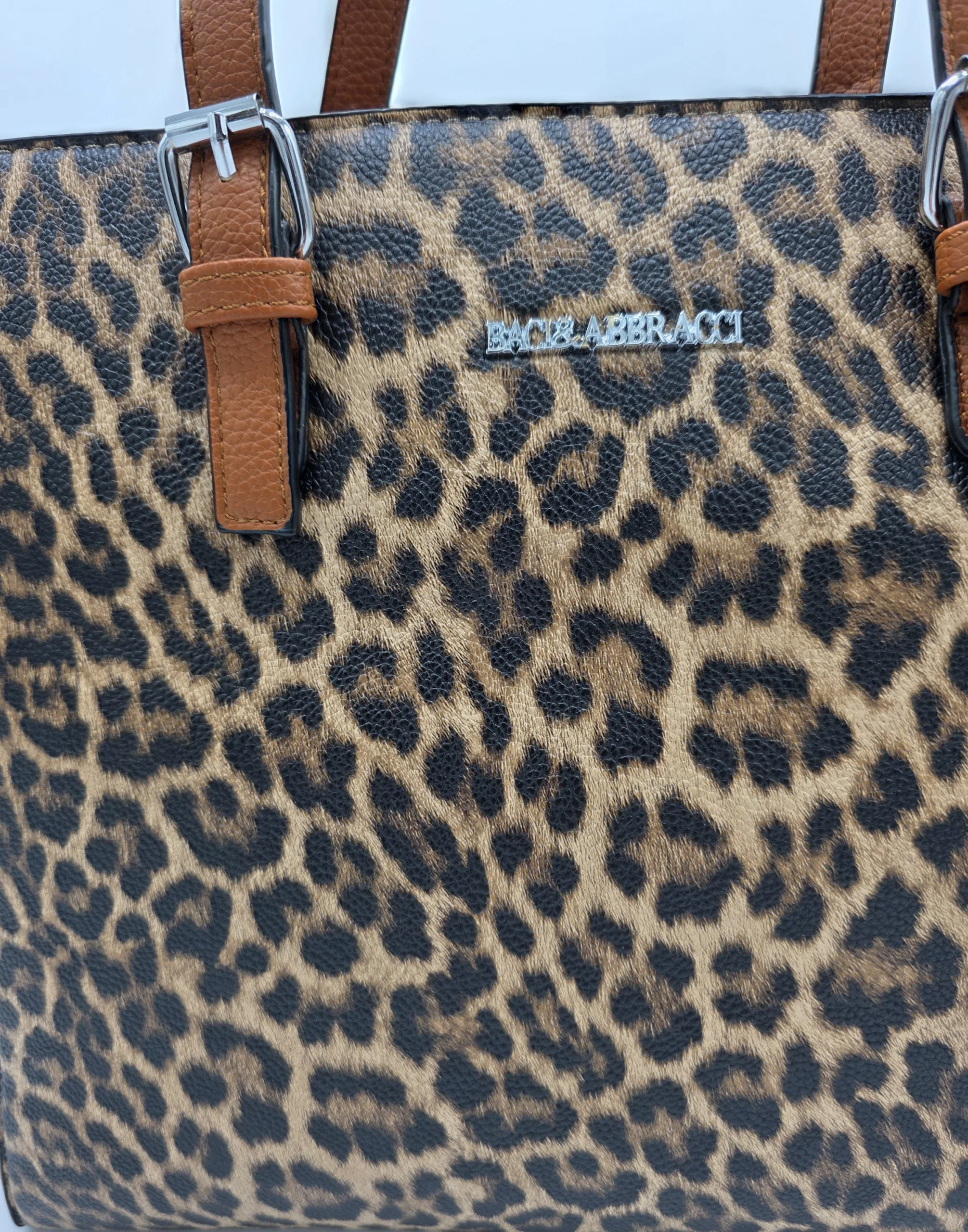 Начало Чанти от Еко Кожа Големи Чанти Чанта от еко кожа в керемидено кафяв леопардов принт