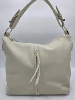 Ежедневна чанта от мека еко кожа с две отделни прегради затварящи се с цип, четири външни джоба с цип, вътрешен джоб с цип и допълнителни джобове за телефон, една дръжка 52см и допълнителна дълга регулираща се дръжка 150см. Ширина 43см, височина 28см,дъно 29см/15см