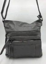Чанта от еко кожа с 3 предни джоба с цип, заден външен джоб с цип, закопчаване с цип, вътре със средна преграда с цип, джоб с цип и допълнителни джобове за телефон, дълга регулираща се дръжка 150см. Ширина 31см,височина 31см,дъно 29см/10см.