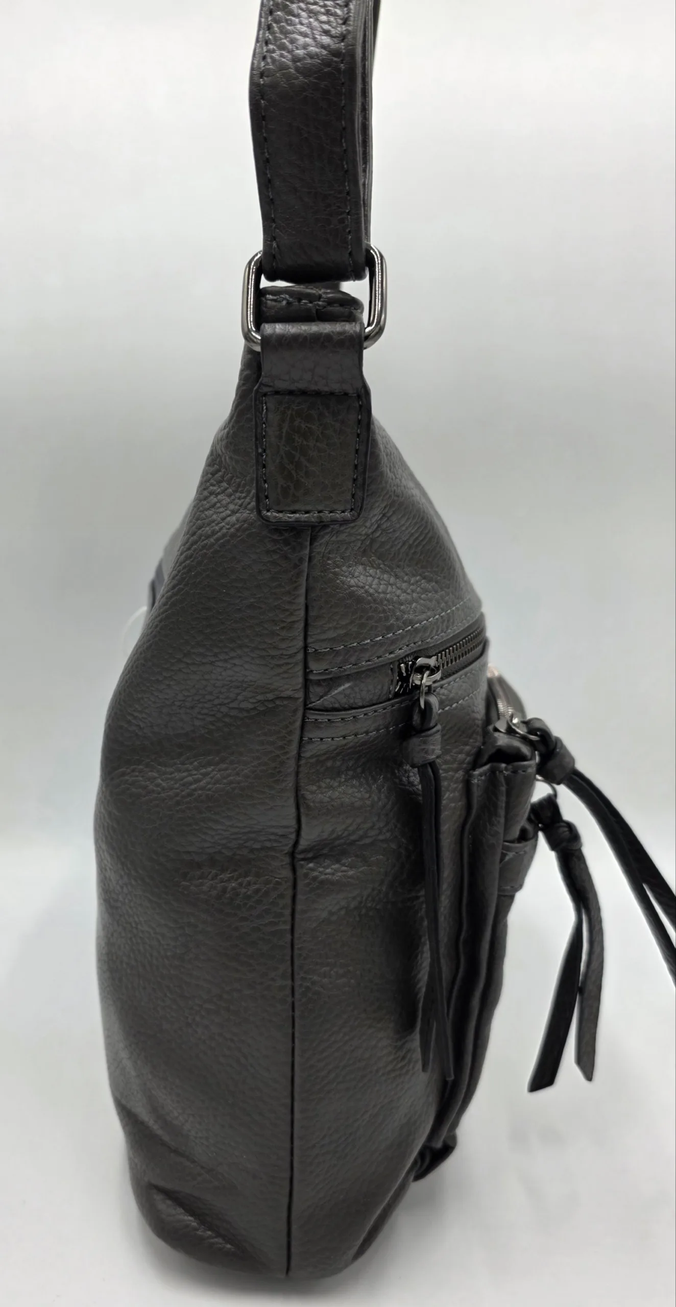 Чанта от еко кожа с нестандартна форма с две вързани регулиращи дръжки 120см максимална дължина, закопчава се с цип и
