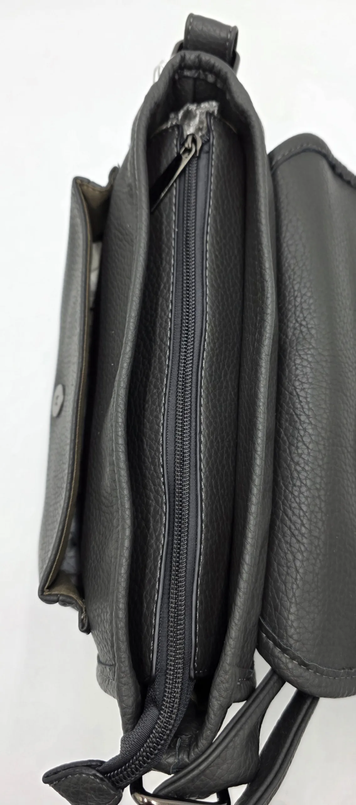 Чанта от еко кожа с нестандартна форма с две вързани регулиращи дръжки 120см максимална дължина, закопчава се с цип и
