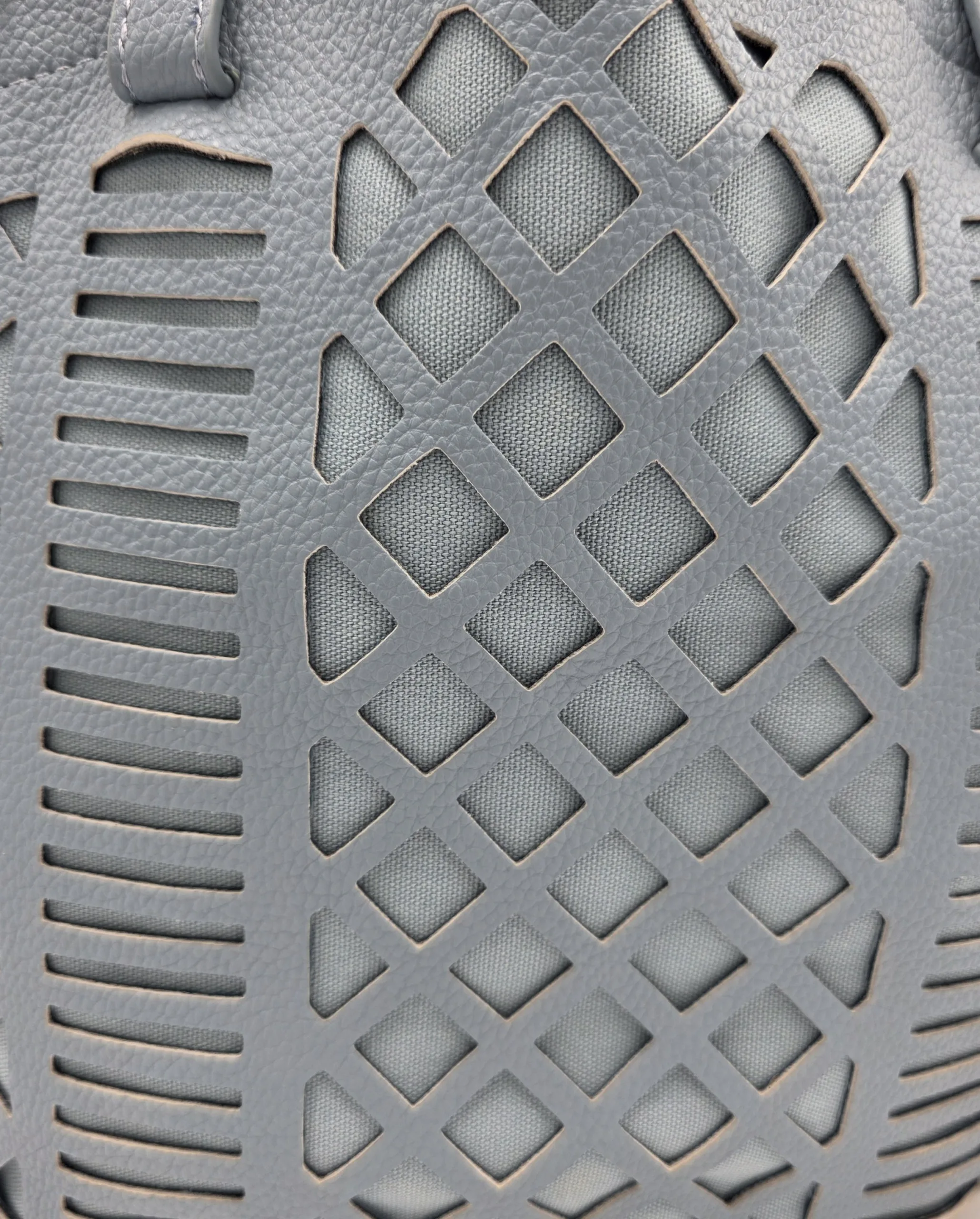 Чанта от еко кожа с нестандартна форма с две вързани регулиращи дръжки 120см максимална дължина, закопчава се с цип и