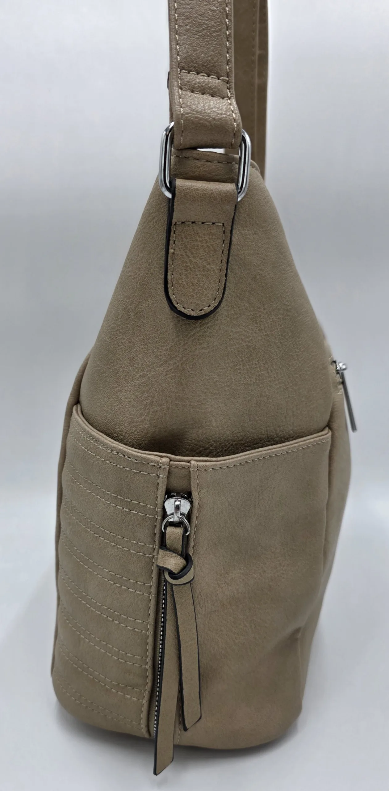 Чанта от еко кожа с нестандартна форма с две вързани регулиращи дръжки 120см максимална дължина, закопчава се с цип и