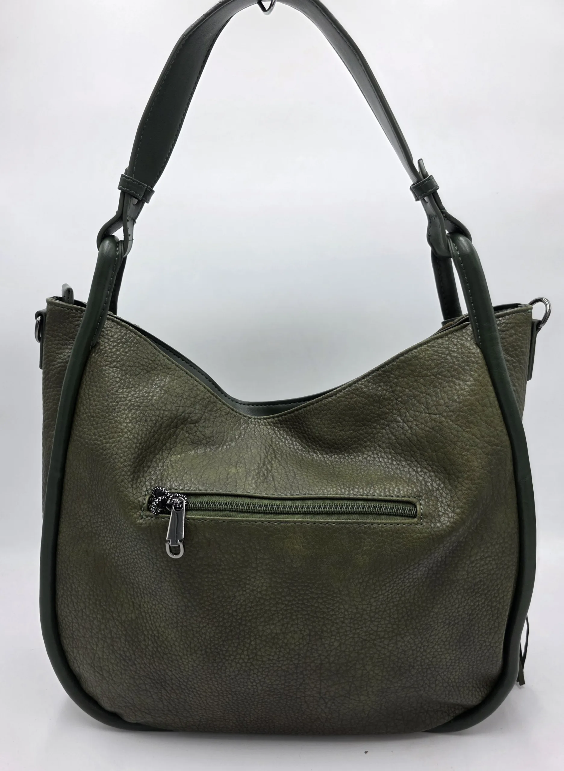 Чанта от еко кожа с една дръжка 53см и допълнителна дълга регулираща се дръжка 150см, външен заден джоб с цип,