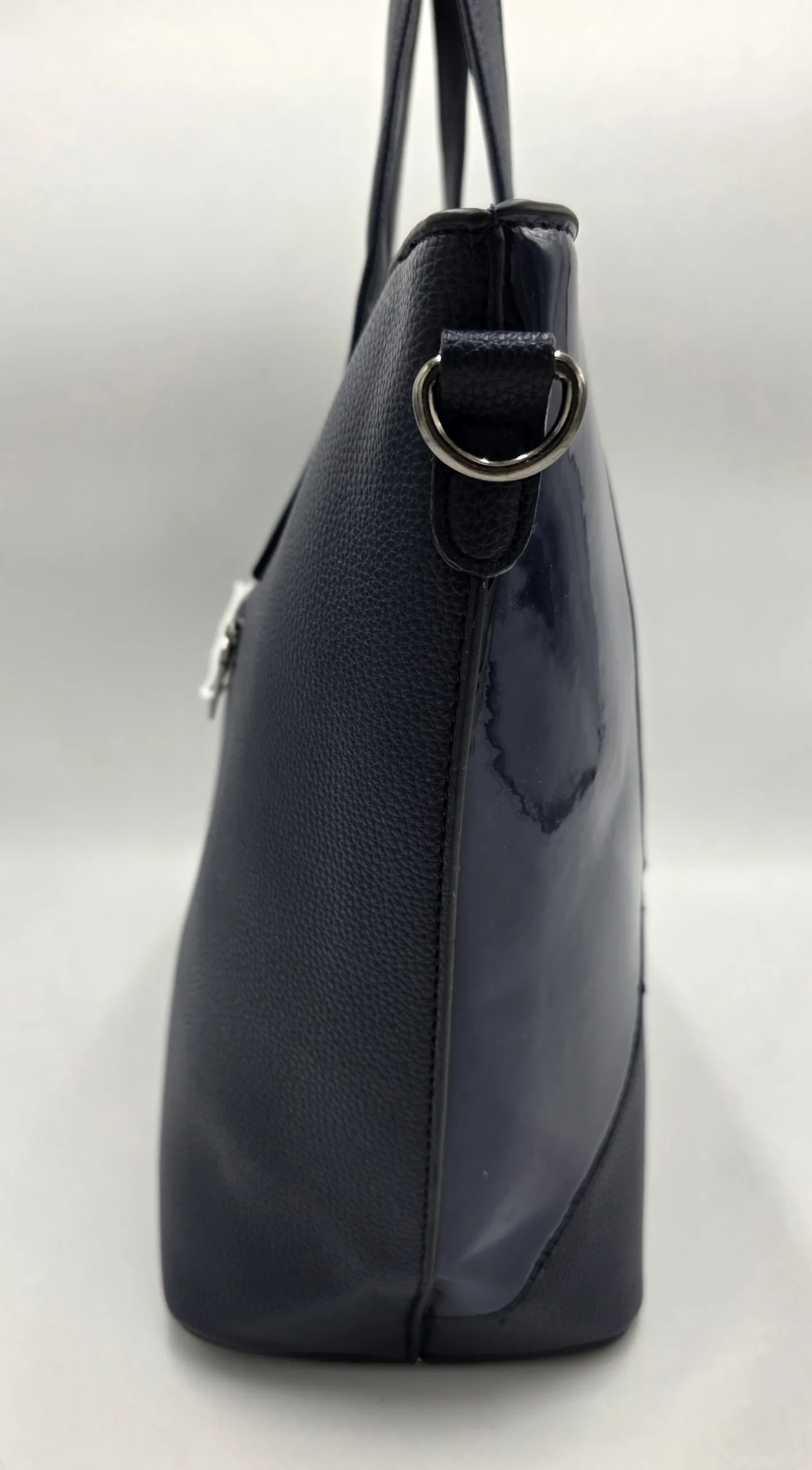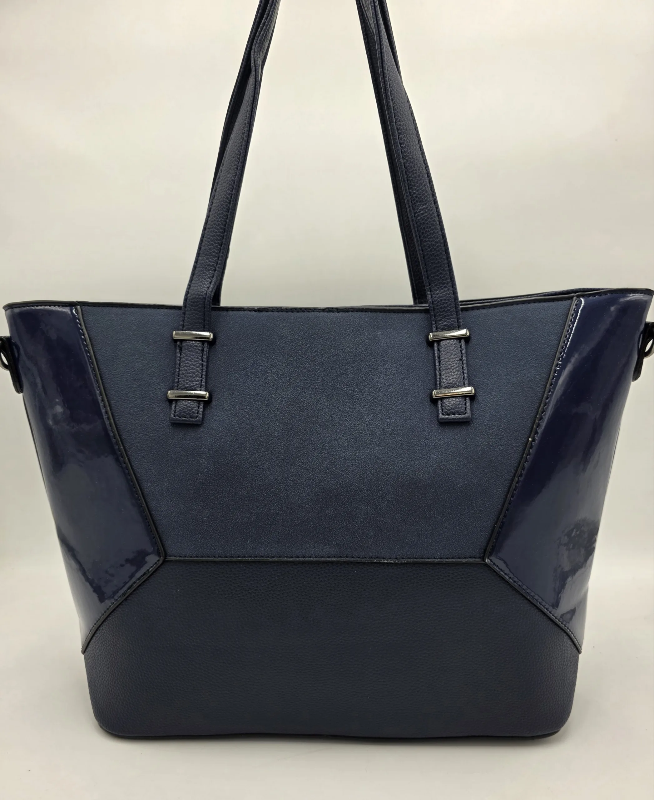 Чанта от еко кожа, велур и лак в тъмно синьо