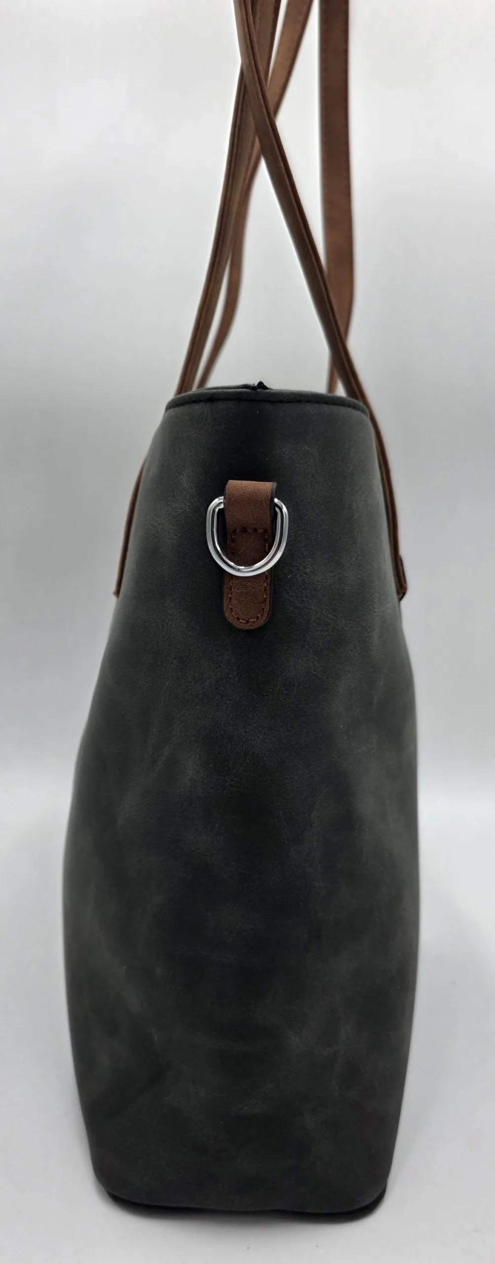Начало Чанти от Еко Кожа Средни Чанти Чанта от еко набук в сиво и каки