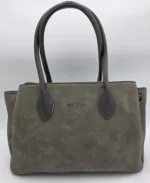 Елегантна чанта от еко набук с две дръжки 50см и допълнителна регулираща се дръжка 150см, с външен заден джоб с цип, три отделни прегради затварящи се с общ цип. Ширина 45см/височина 25см, дъно 34см/13см.