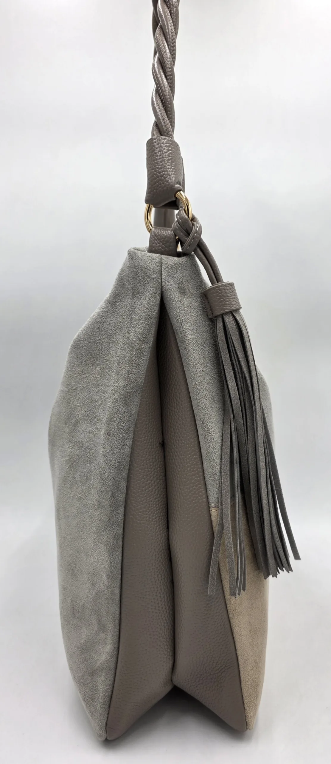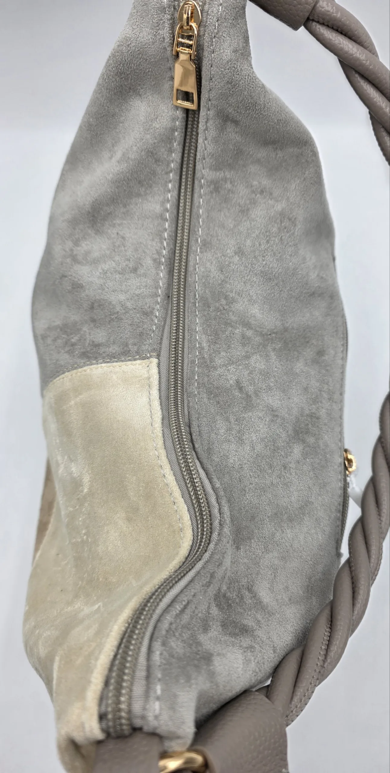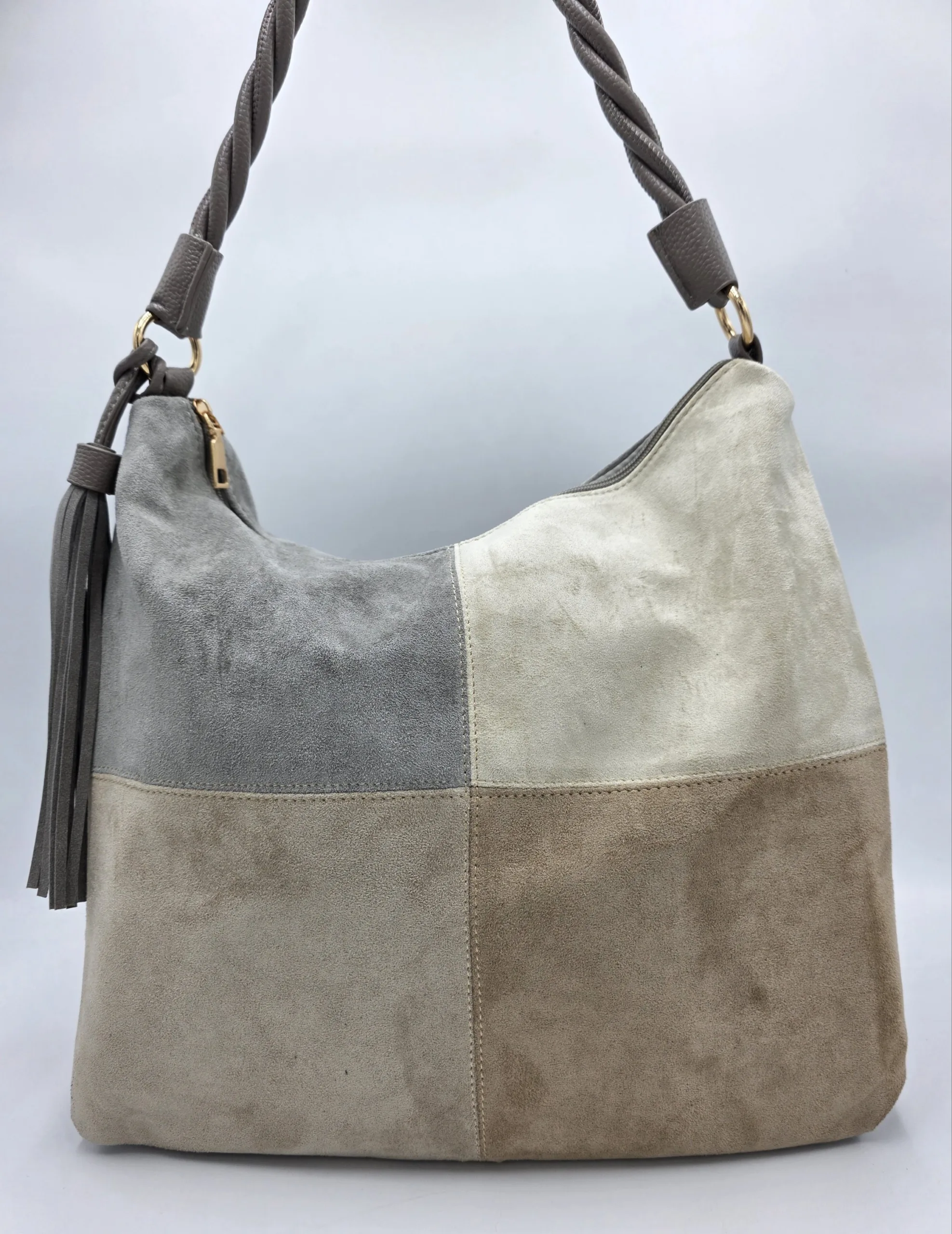 Чанта от еко велур в сиво, сиво и беж 29.65€ / 57.99 лв.
