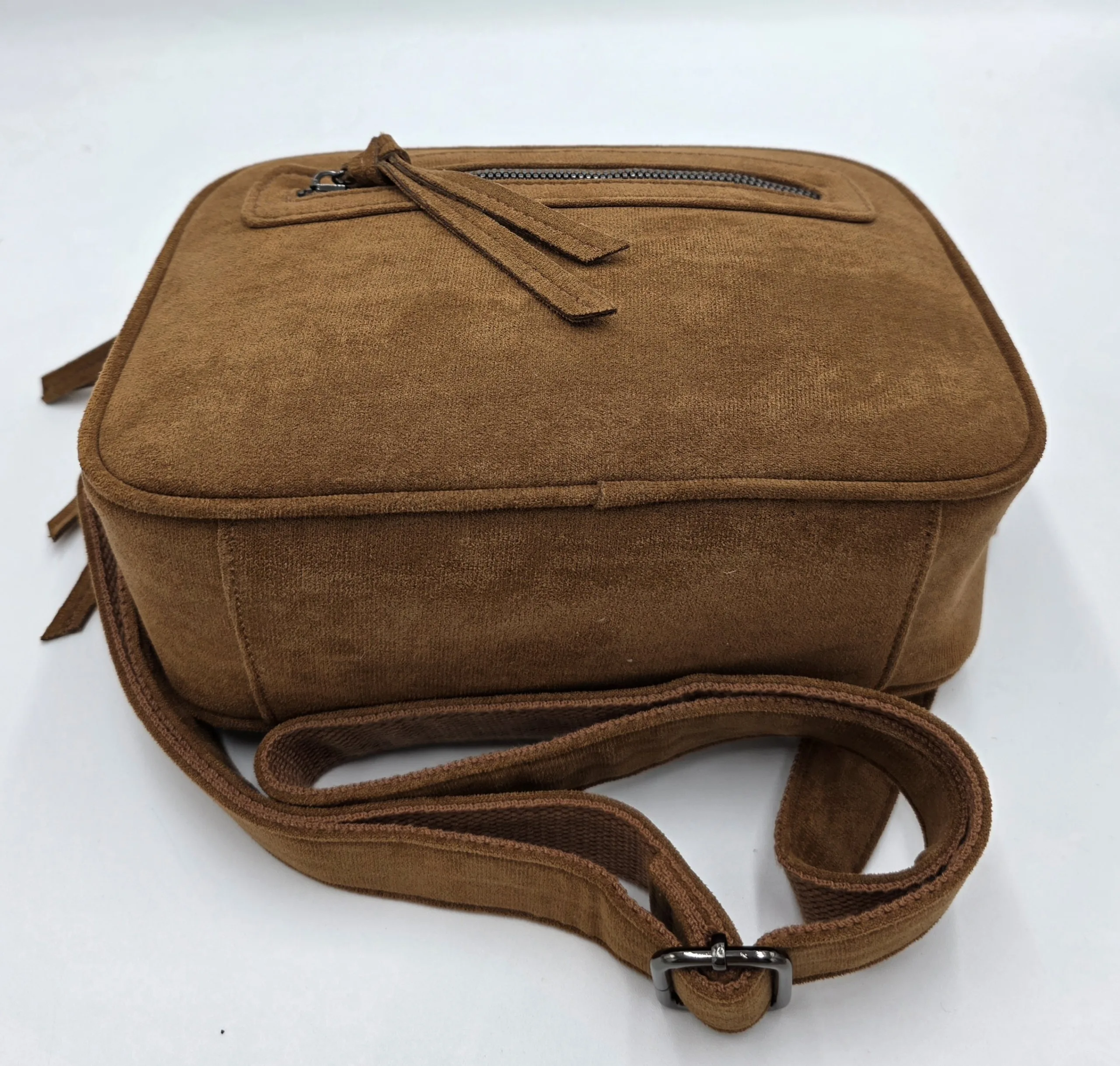 Чанта от еко велур в цвят камел