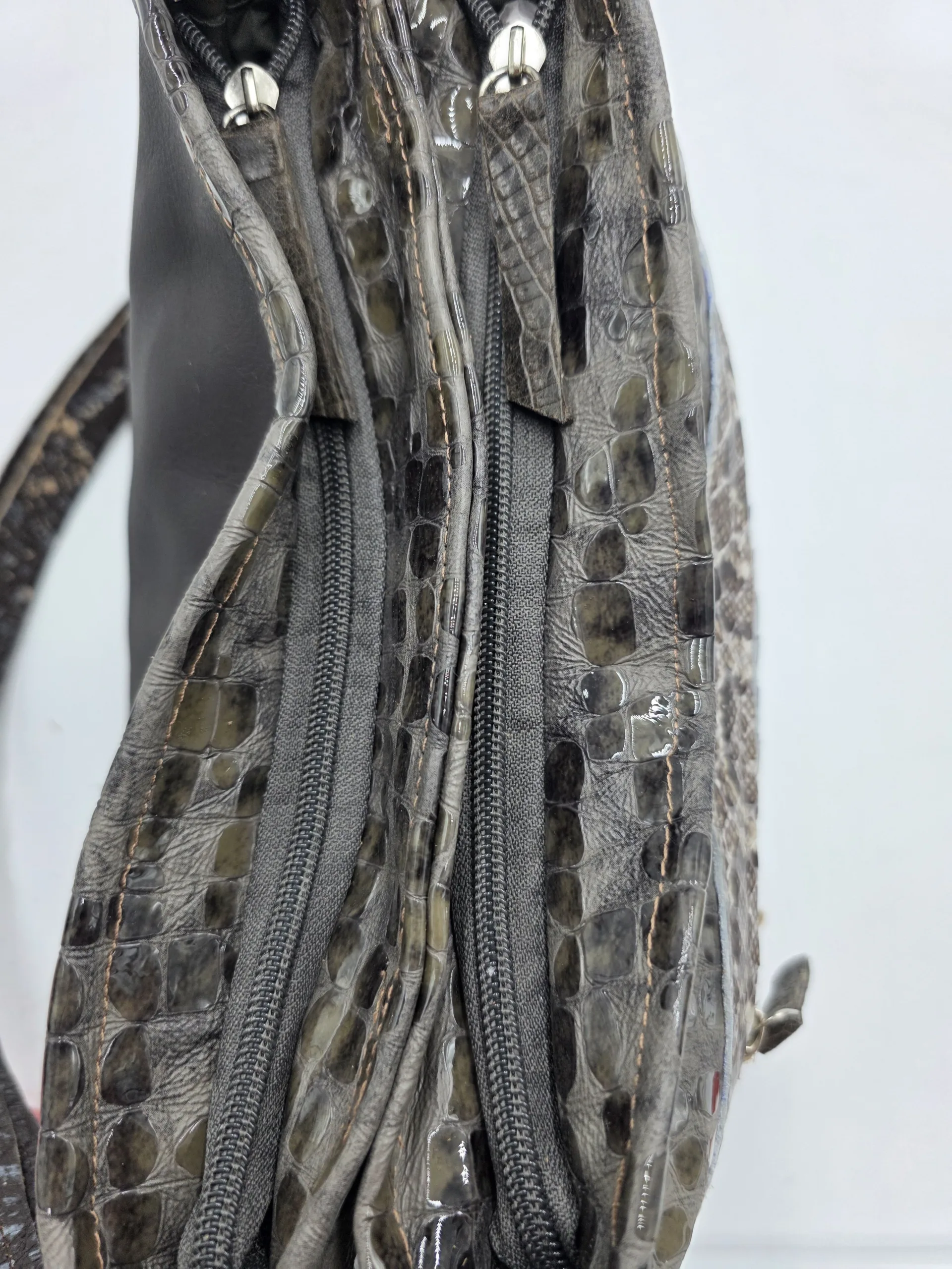 Чанта от естествена кожа в змийски принт